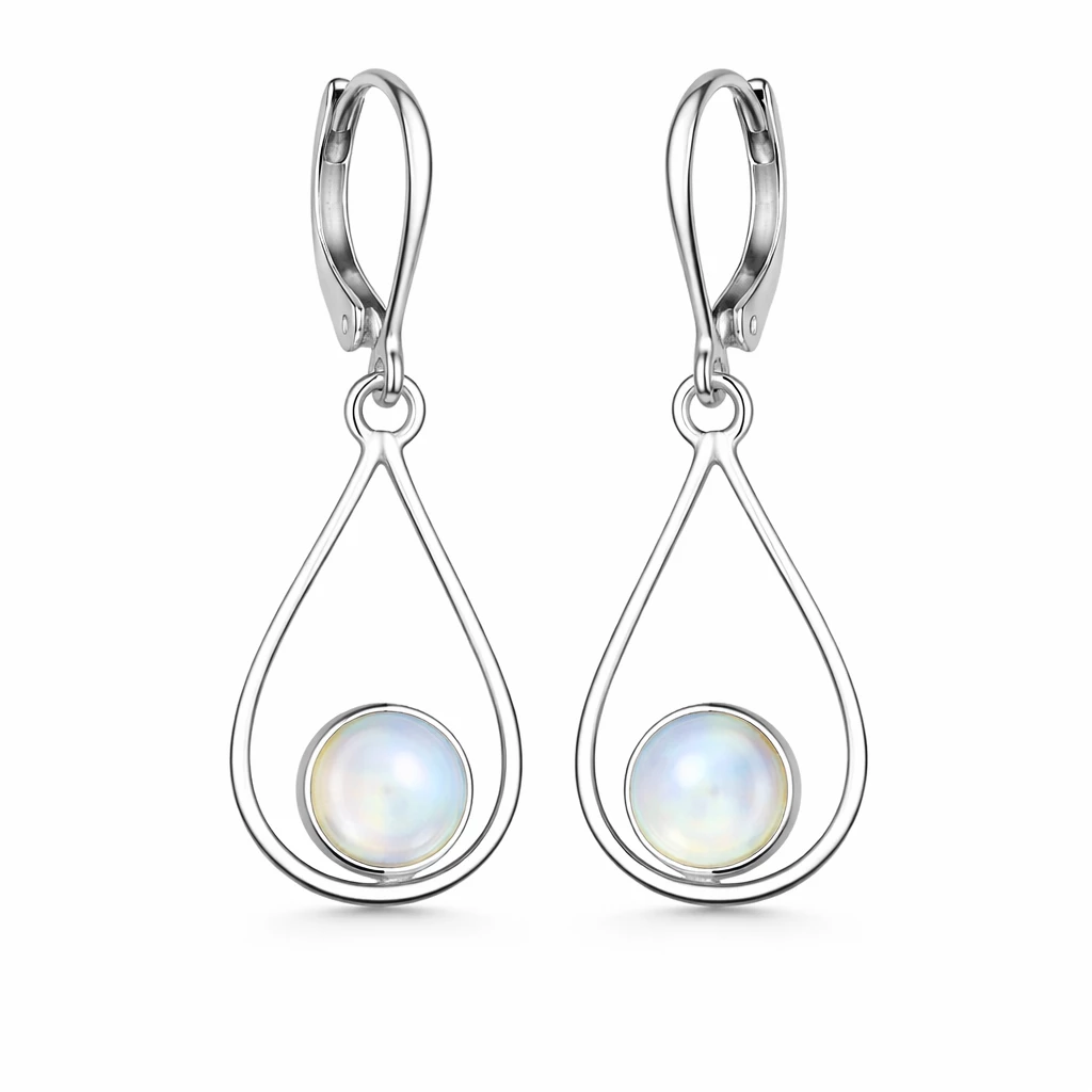 Krásné a velice elegantní stříbrné dámské náušnice ve tvaru kapky, kterým dominuje nádherný měsíční kámen, pečlivě usazený ve stříbrném lůžku. Zapínání mají klapku.