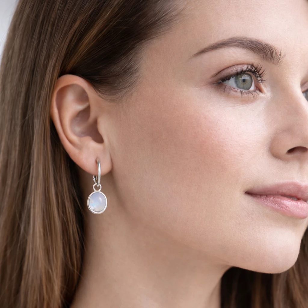 Dokonalé snoubení krásy a přírody poskytují tyto drobné krásné dámské náušnice z měsíčního kamene.