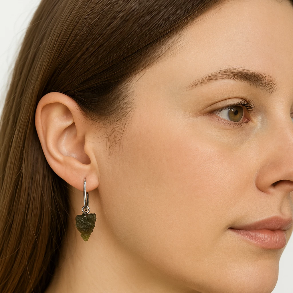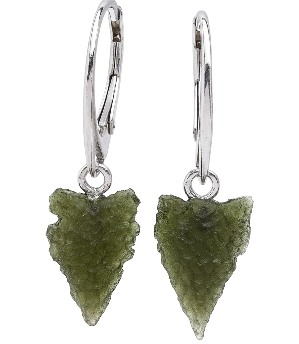 Velice krásné a jednoduše elegantní jsou tyto náušnice s krásným olivově zeleným vltavínem, kterému se též říká moldavit. Broušený kámen je vsazen do stříbra a zapínání náušnic je bezpečně vyřešeno na šroubek.
