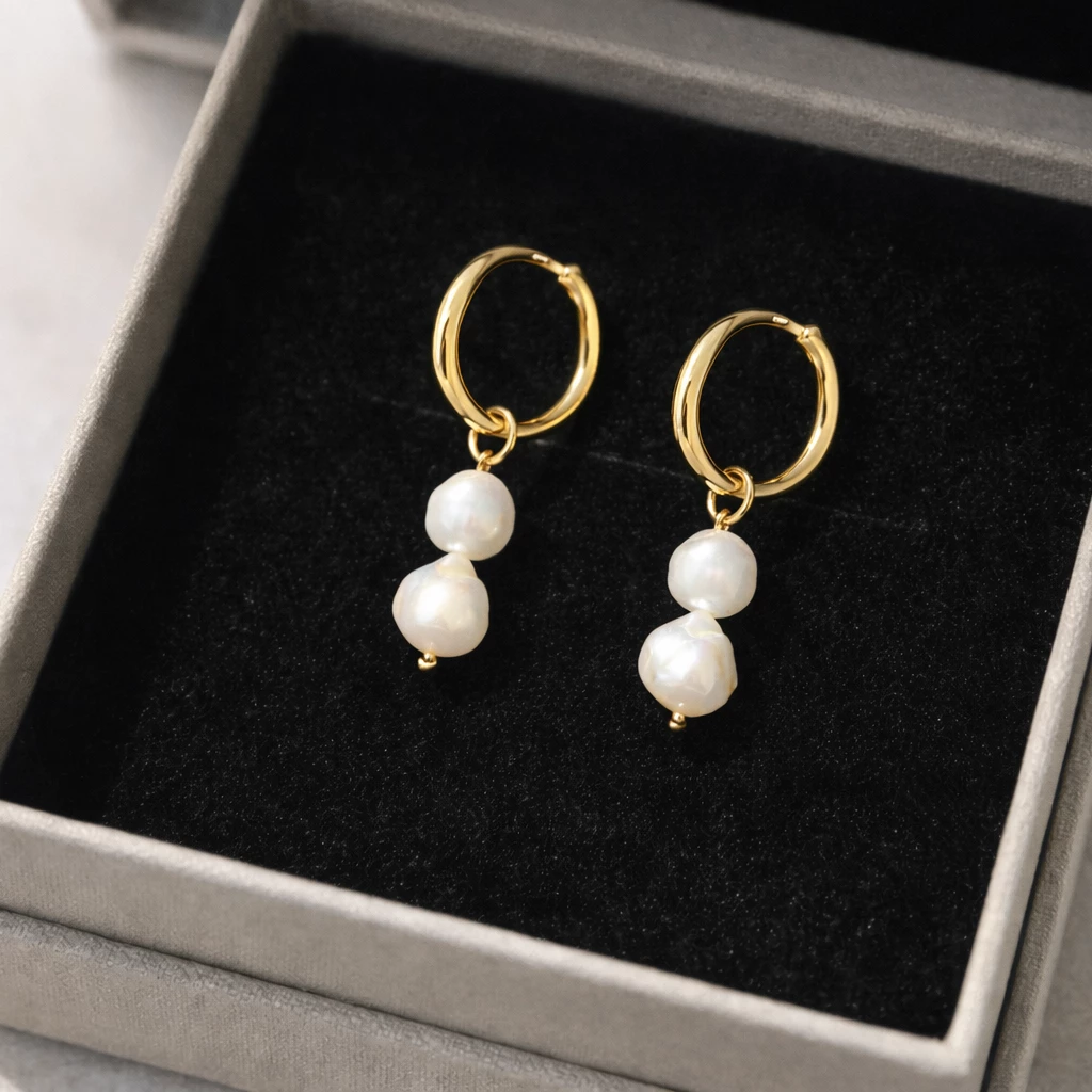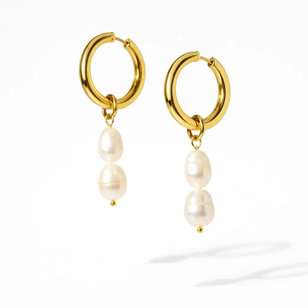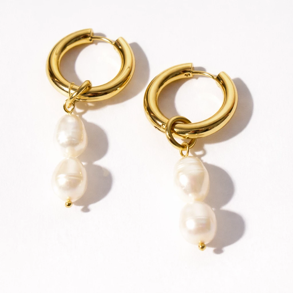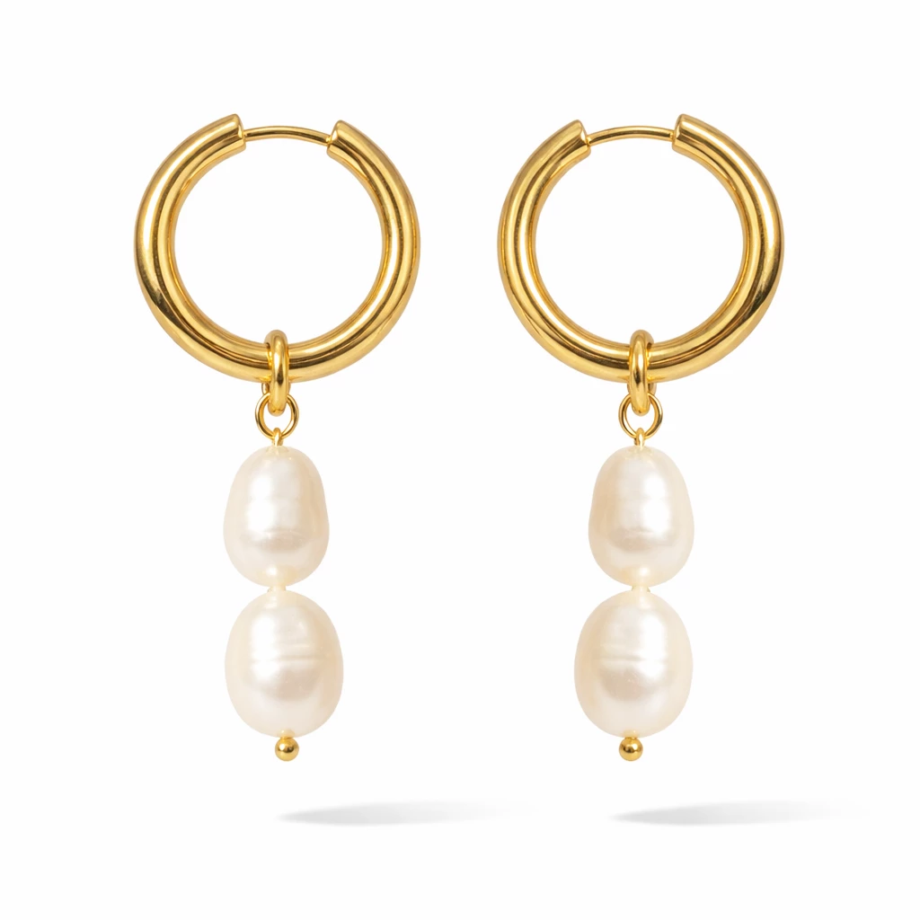 Elegantní ocelové náušnice zlacené 18k zlatem s pravou říční perlou jsou nadčasovým doplňkem pro každý den i speciální příležitosti. Minimalistický design v kombinaci s přirozenou krásou perel dodá vašemu outfitu jemnou luxusní tečku.