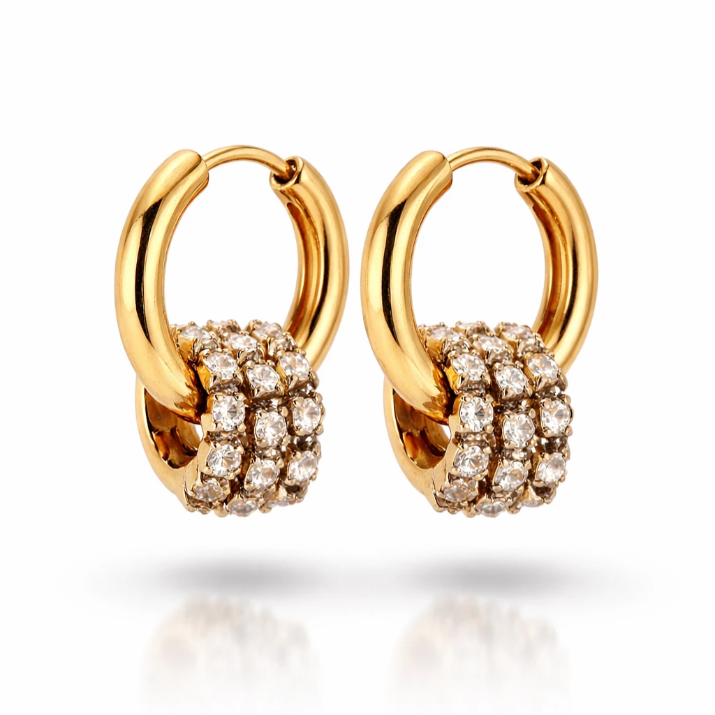 Ocelové zlacené náušnice se zirkony Lumiria zaujmou svým luxusním vzhledem, jemným třpytem kamenů a elegantním designem, který podtrhne každý outfit.