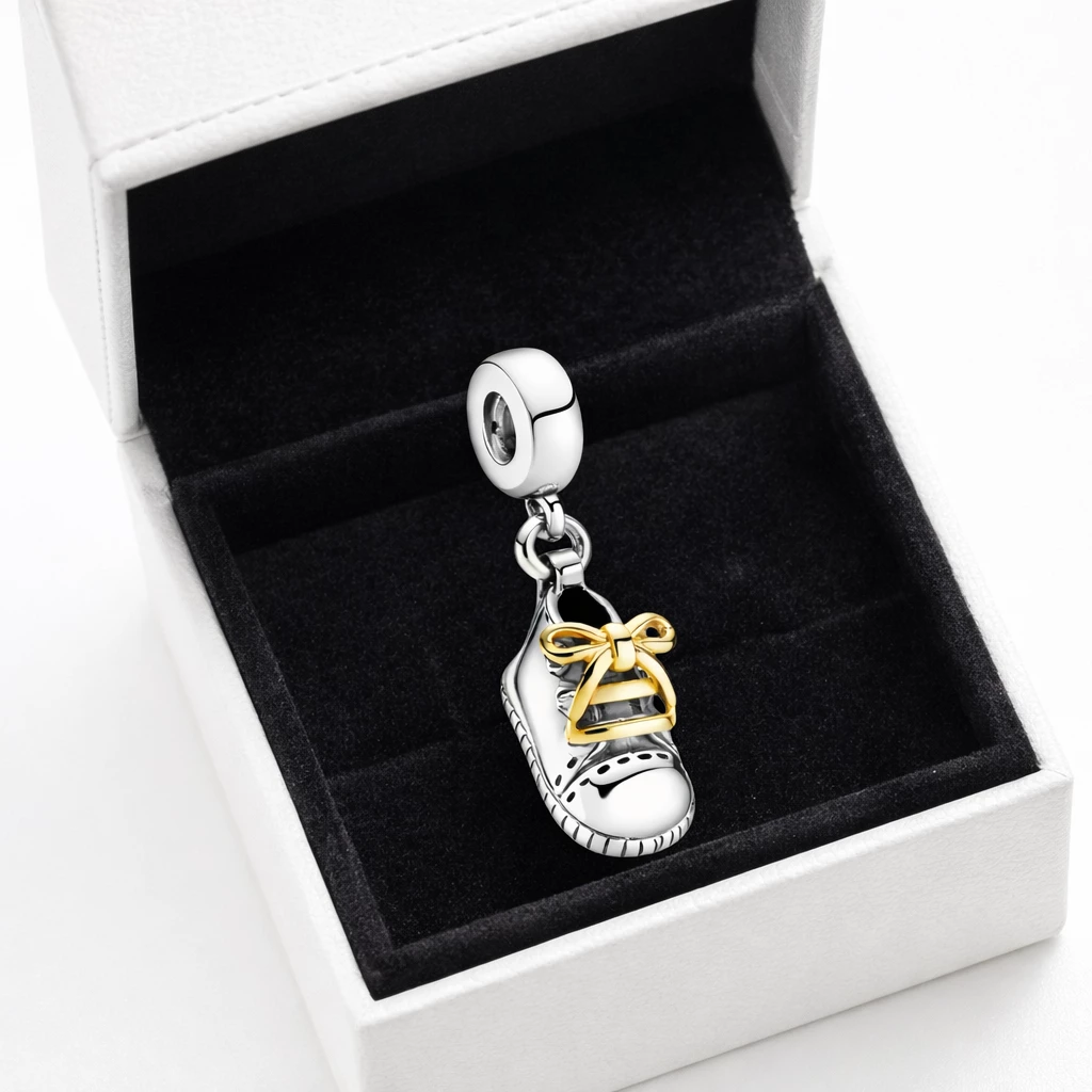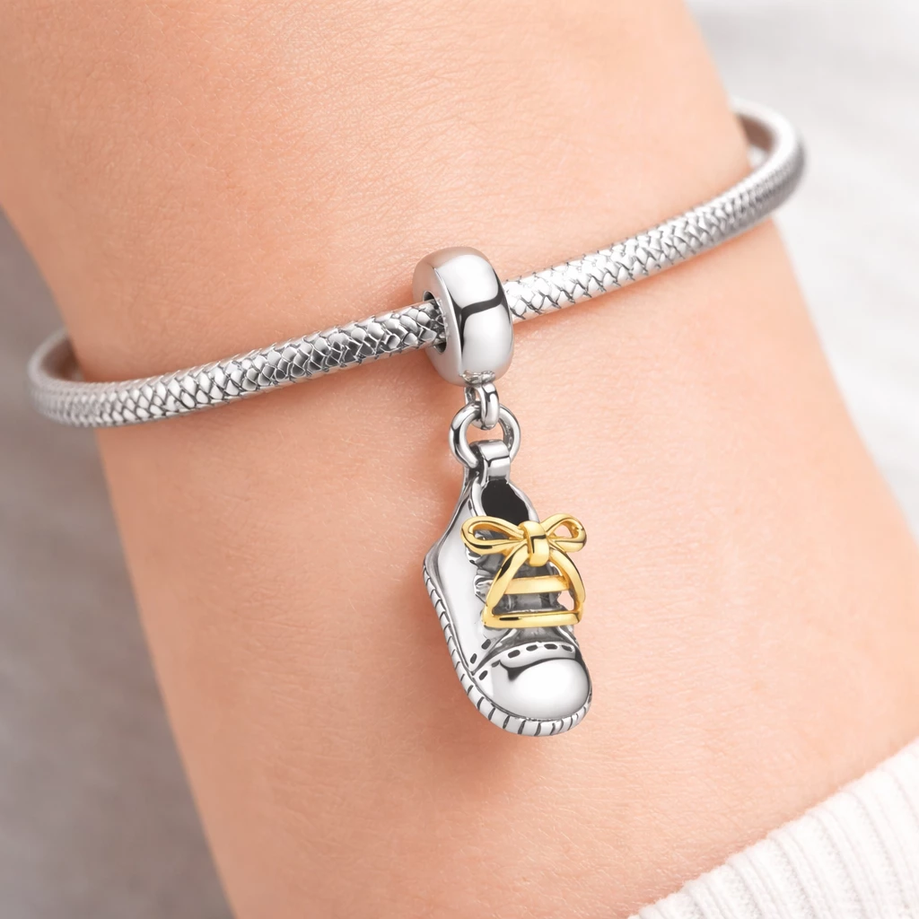 Stříbrný přívěsek bota s mašličkou Shoe je hravým navlékacím šperkem, který dodá každému náramku osobitost, lehkost a špetku módní elegance.