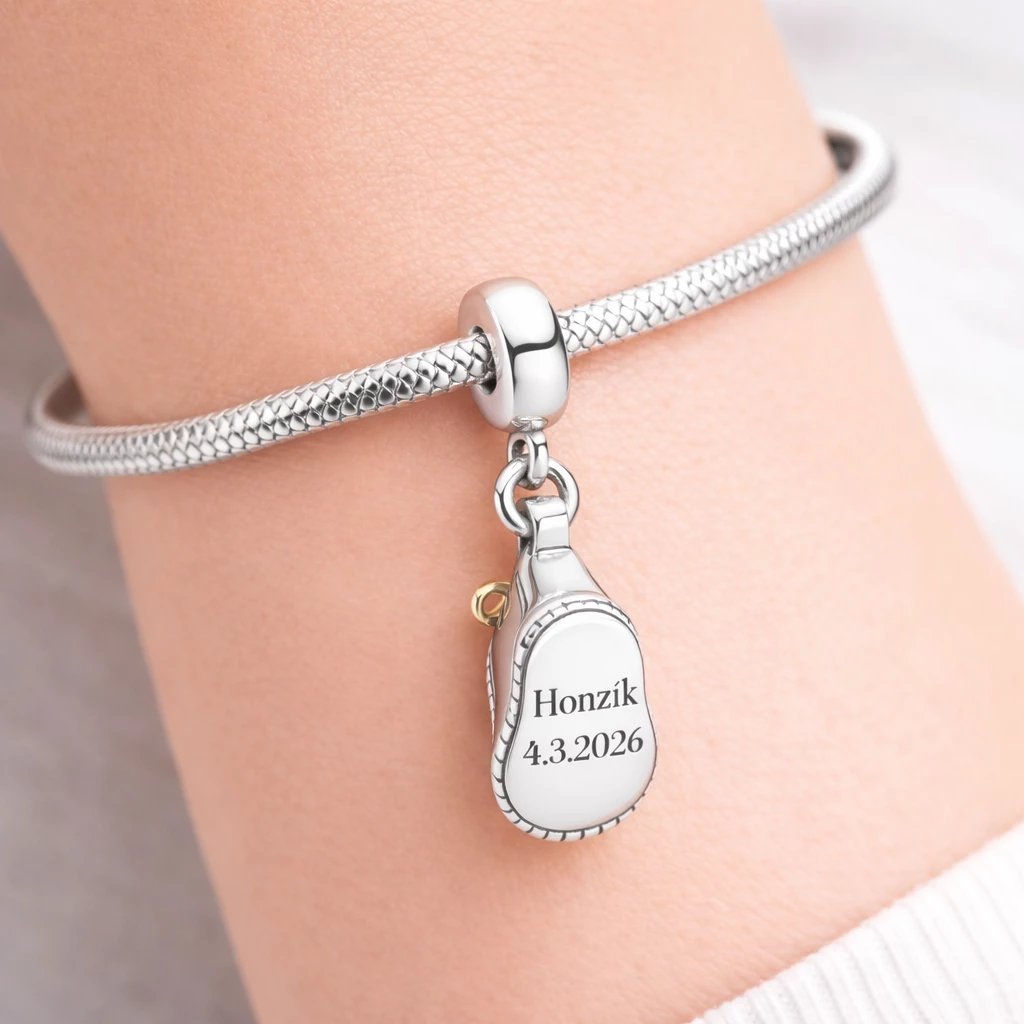 Na spodní část podrážky je možné vygravírovat jméno, datum nebo krátký text, díky čemuž se z přívěsku stává osobní šperk s jedinečným významem.