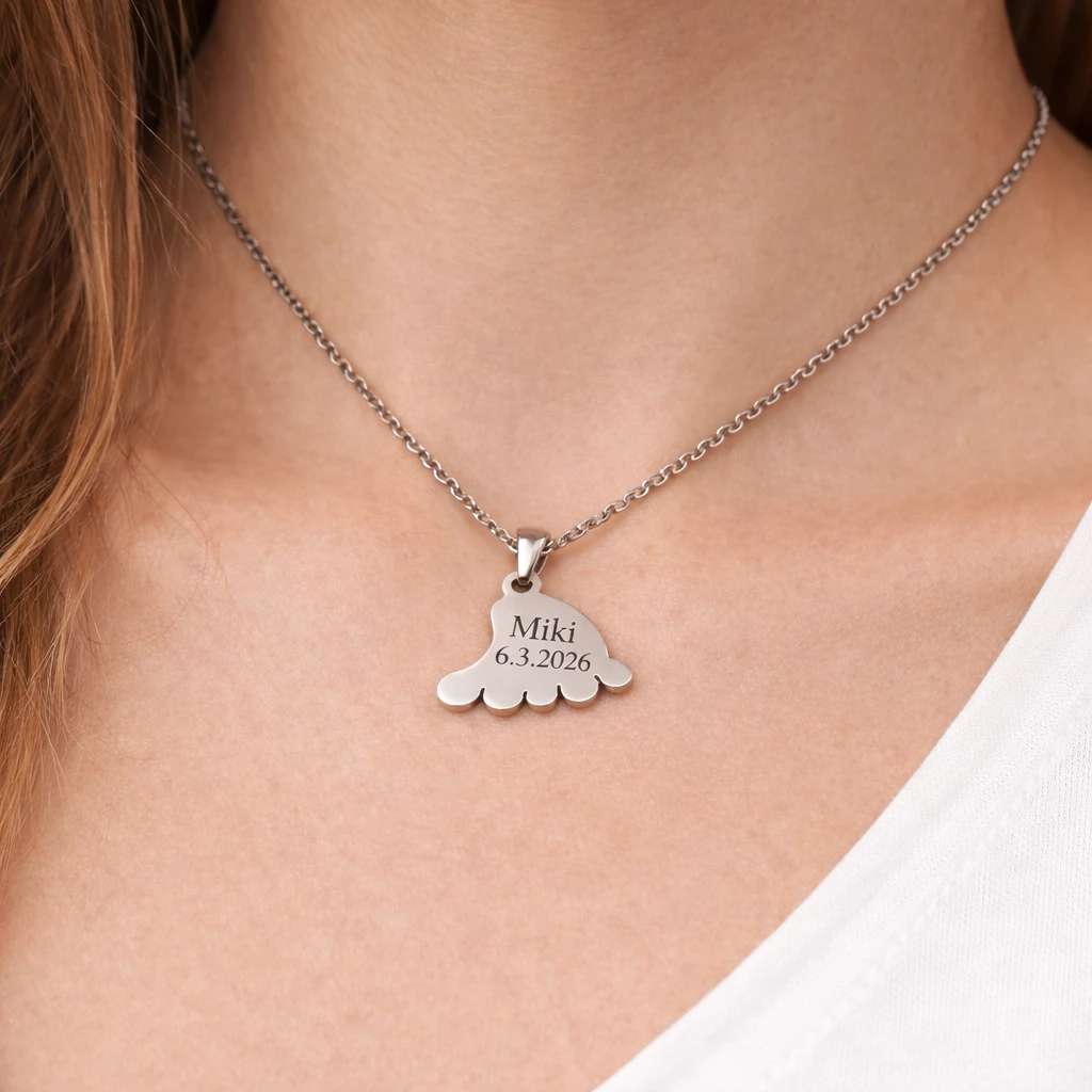 Přívěsek ve tvaru nožičky je ideální také pro gravírování jména, data narození nebo krátkého vzkazu, díky čemuž se může stát krásnou osobní památkou nebo dárkem k narození dítěte.