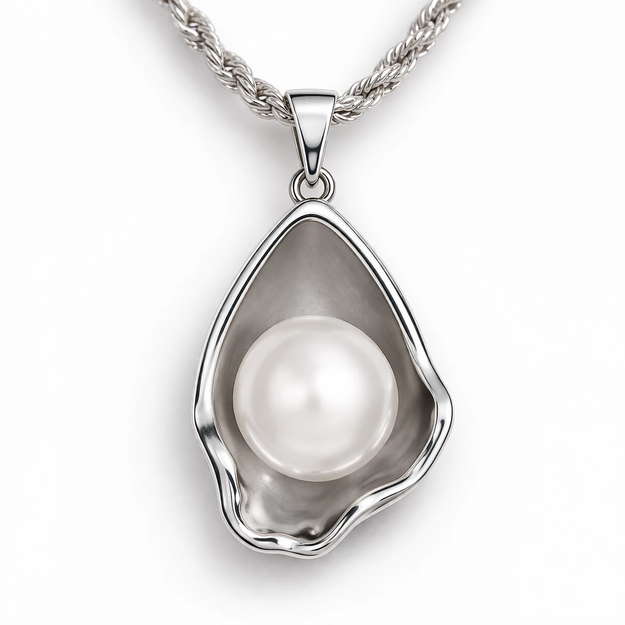 Ocelový náhrdelník s říční perlou White Harmony je vyroben z kvalitní chirurgické oceli, která vyniká svou odolností a dlouhou životností. Dominantou šperku je pravá říční perla zasazená do organicky tvarovaného lůžka, které zvýrazňuje její přirozenou strukturu, hloubku lesku a jedinečný charakter.