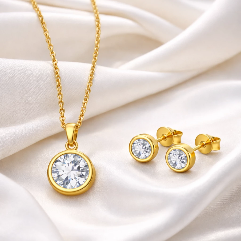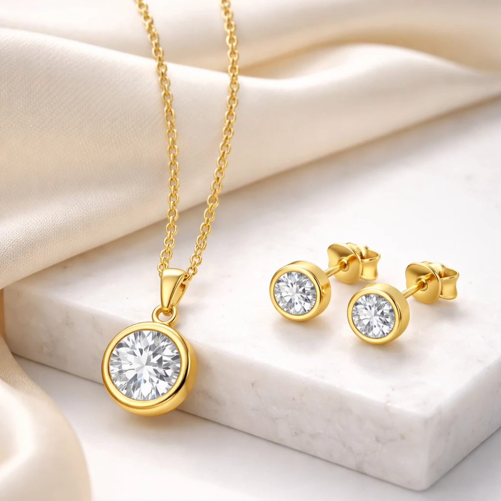 Tato elegantní souprava Auriana je nadčasovým šperkem, který podtrhne ženskou krásu a dodá každému outfitu jemný luxusní třpyt.