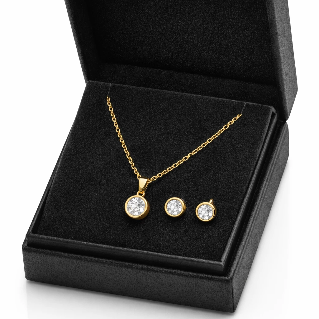 Ocelová zlacená souprava s krystalem Swarovski kruh Auriana je elegantní šperkový set, který zaujme svým čistým designem a výrazným třpytem. Precizně broušený krystal Swarovski zasazený do kulatého lůžka krásně zachycuje světlo a vytváří luxusní efekt, díky kterému souprava působí nadčasově a velmi elegantně.