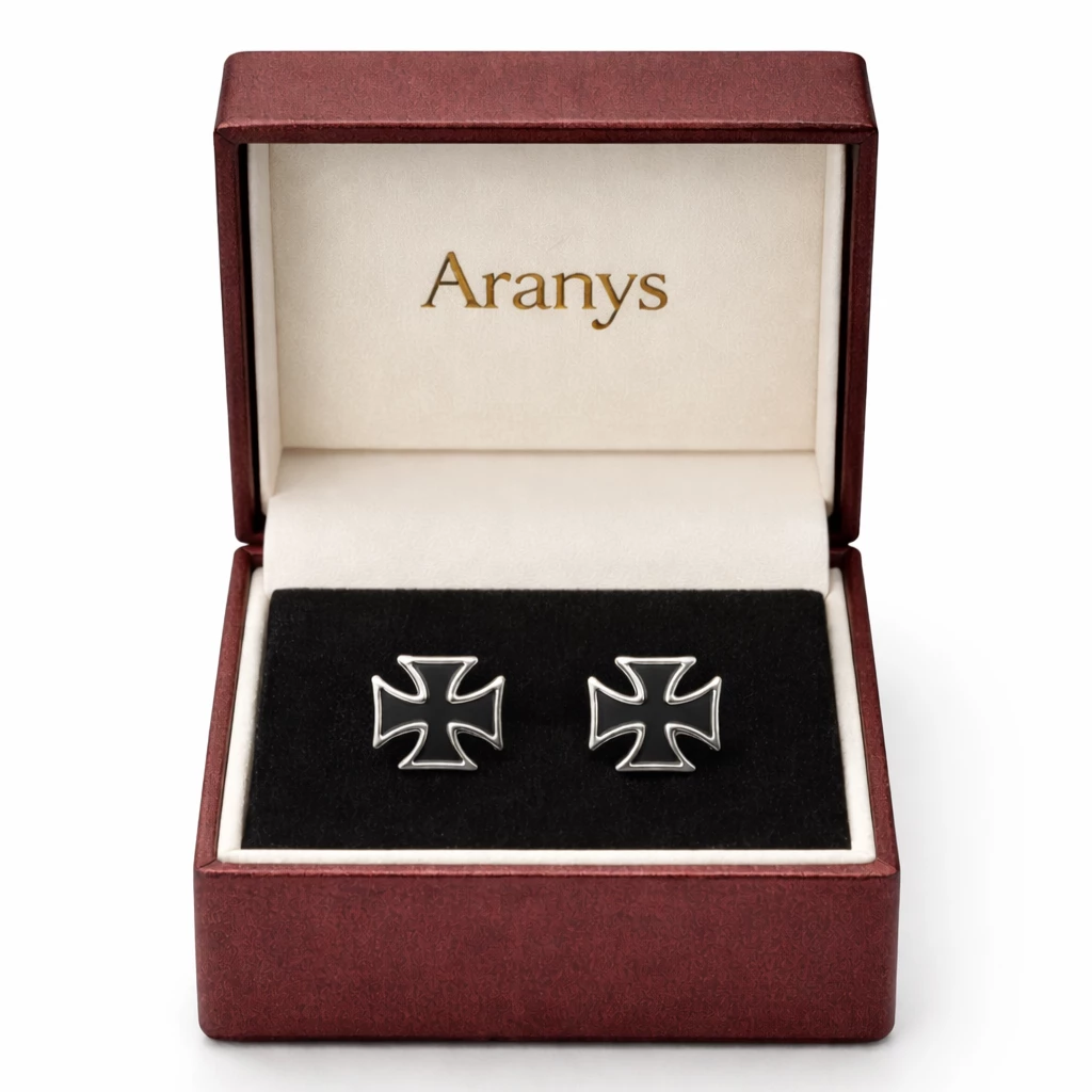 Ocelové náušnice maltézský kříž Ares jsou vyrobeny z kvalitní chirurgické oceli a zdobeny černým smaltem, který zvýrazňuje ikonický tvar kříže a dodává šperku výrazný kontrast.