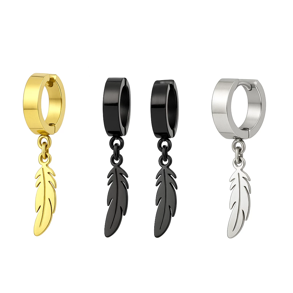 Jemné náušnice s vysícím hladkým peříčkem. Tyto poutavé náušnice si oblíbíte pro jejich elegantní vzhled. Chirurgická ocel je žádaná a oblíbená pro své vlastnosti, jako je dlouhodobá životnost a odolnost vůči okolním vlivům. Velmi vhodná je také pro alergiky na ostatní kovy.