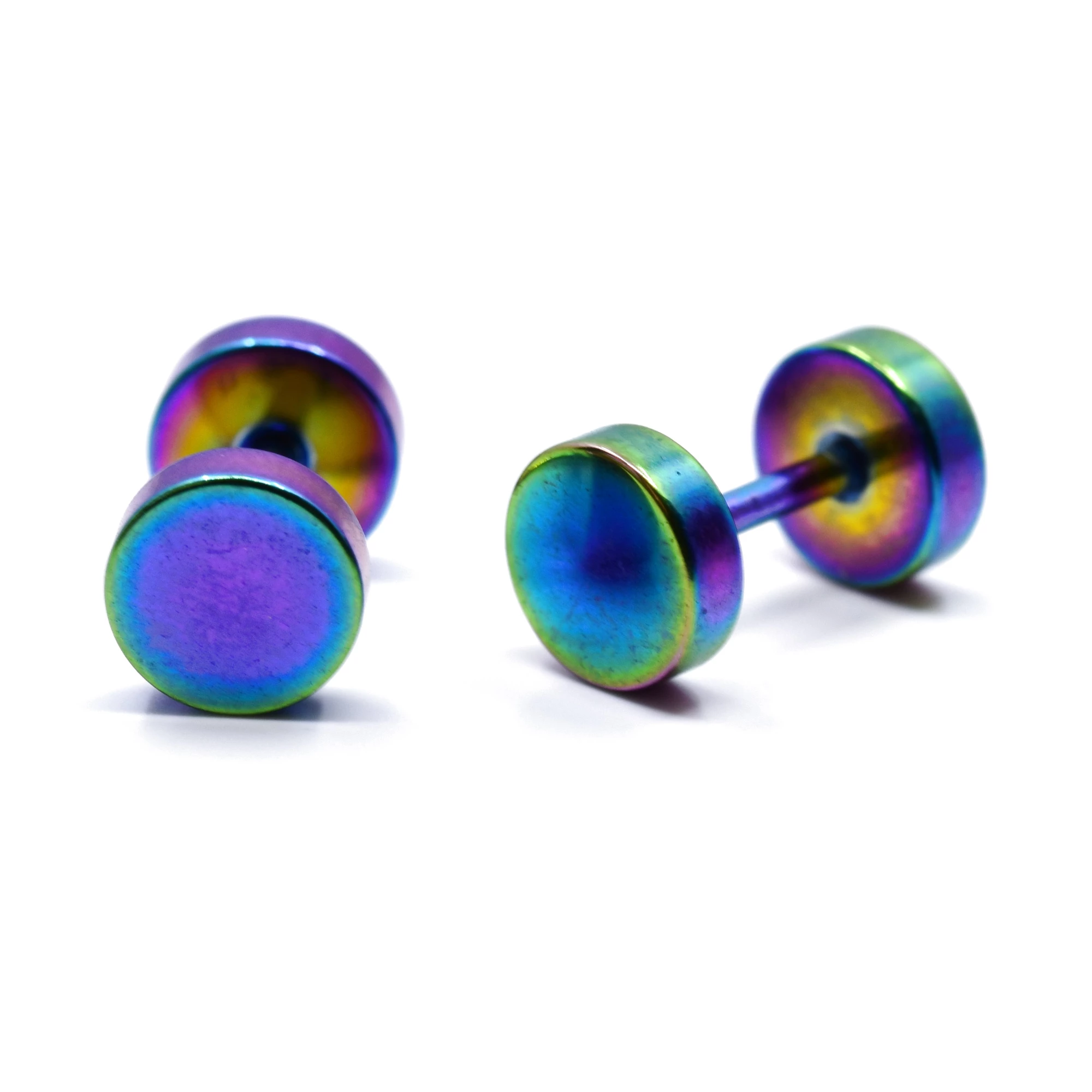 Zajímavé ocelové náušnice s hladkým povrchem, hned ve čtyřech barevných variantách. Vybírejte ve filtru mezi tmavě černou, zářivou stříbrnou, luxusní zlatou nebo měnící se multicolor. Cena je za 1 pár.