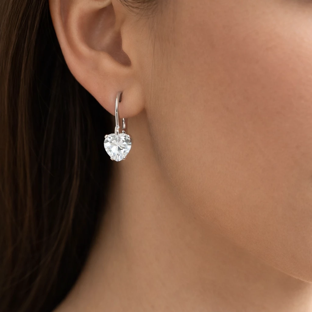 Nádherné dámské náušnice se zirkonem ve tvaru srdíčka z chirurgické oceli. Zhotoveno ve dvou barevných variantách - stříbrné a zlaté barvě.