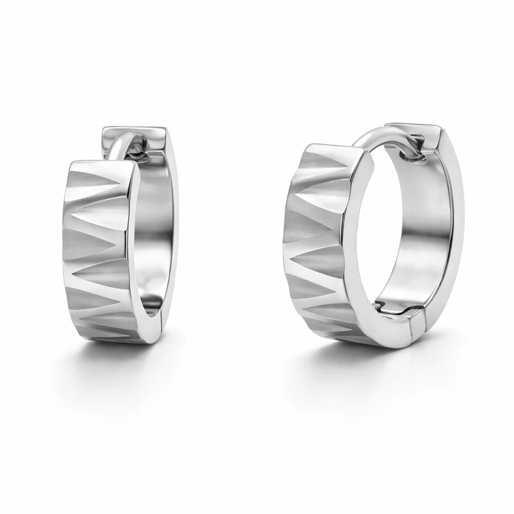 Výraznější kruhové náušnice z chirurgické oceli doplní jakýkoliv další šperk. Hladké provedení s jemným rytím vypadá velice elegantně. Pohodlné nasazení i nošení zajistí zacvakávací zapínání.