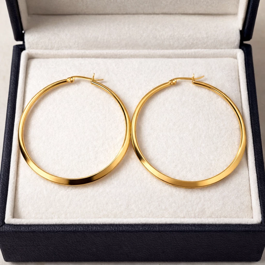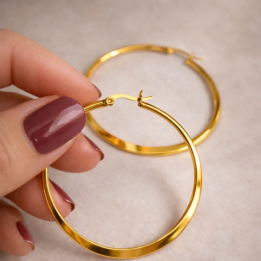 Ocelové zlacené kruhové náušnice Aureilia jsou elegantním a nadčasovým doplňkem, který díky svému čistému designu krásně doplní každodenní i slavnostní outfit.