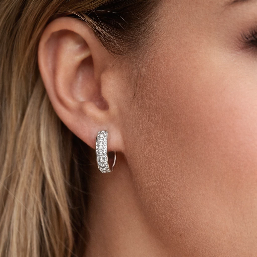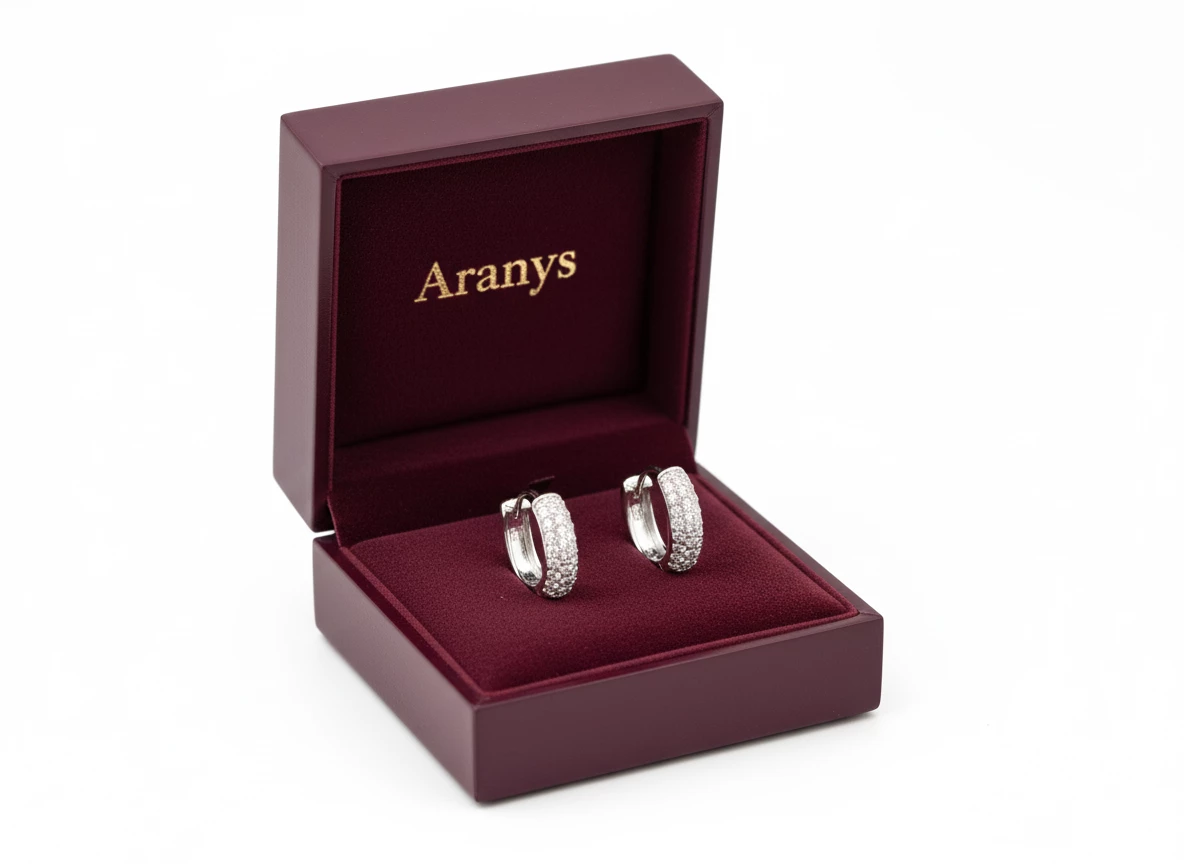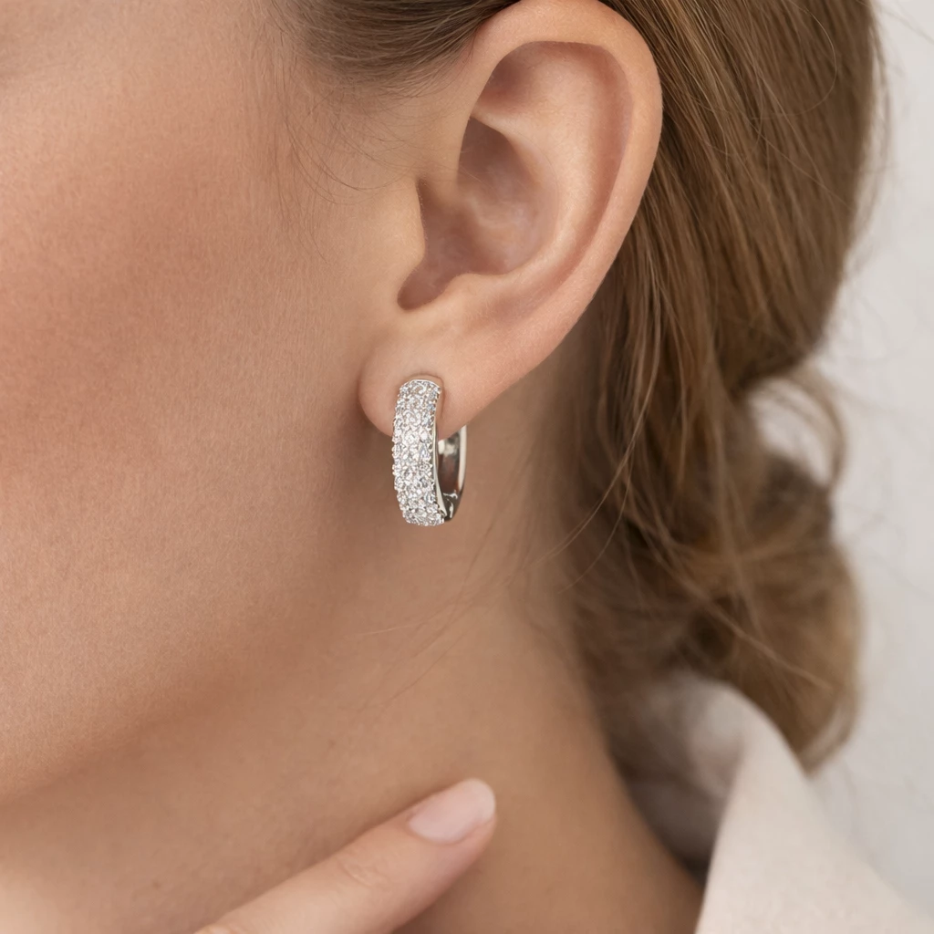 Kruhové náušnice z chirurgické oceli jsou zdobeny čirými zirkony, které dodávají šperku luxusní vzhled a elegantní lesk. Precizní zpracování a hladký povrch zajišťují pohodlné nošení bez podráždění pokožky.