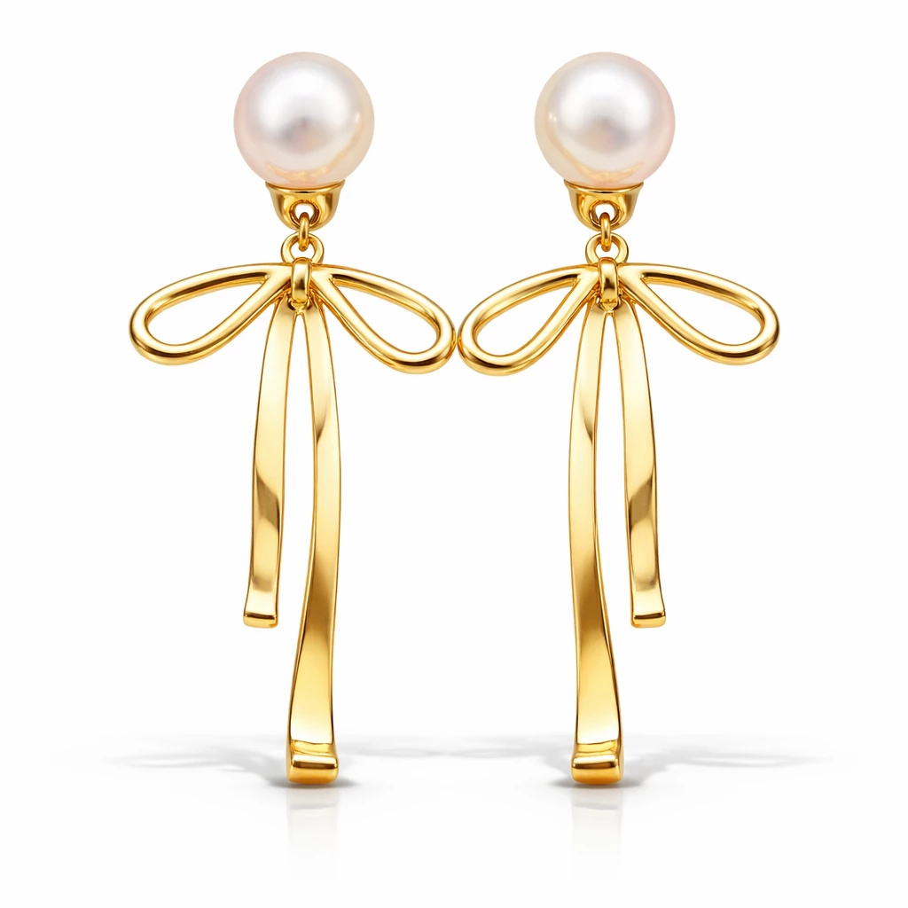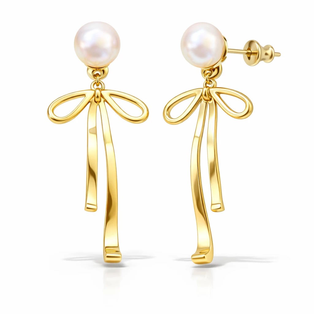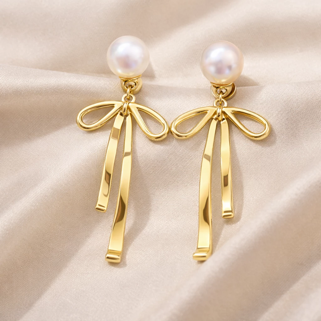Ocelové zlacené náušnice s perlou Bellinia jsou vyrobeny z kvalitní chirurgické oceli. Dominantou šperku je bižuterní perla doplněná o jemný detail mašle, která dodává náušnicím elegantní a hravý výraz.