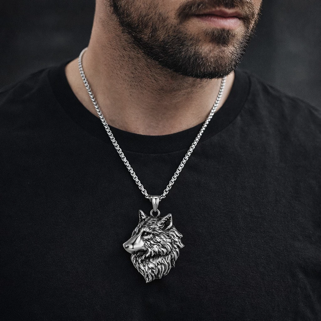 Masivní ocelový náhrdelník s motivem vlka zaujme na první pohled precizním zpracováním a výrazným designem. Vlk je symbolem síly, nezávislosti, intuice a loajality – ideální šperk pro ty, kteří se nebojí jít vlastní cestou.