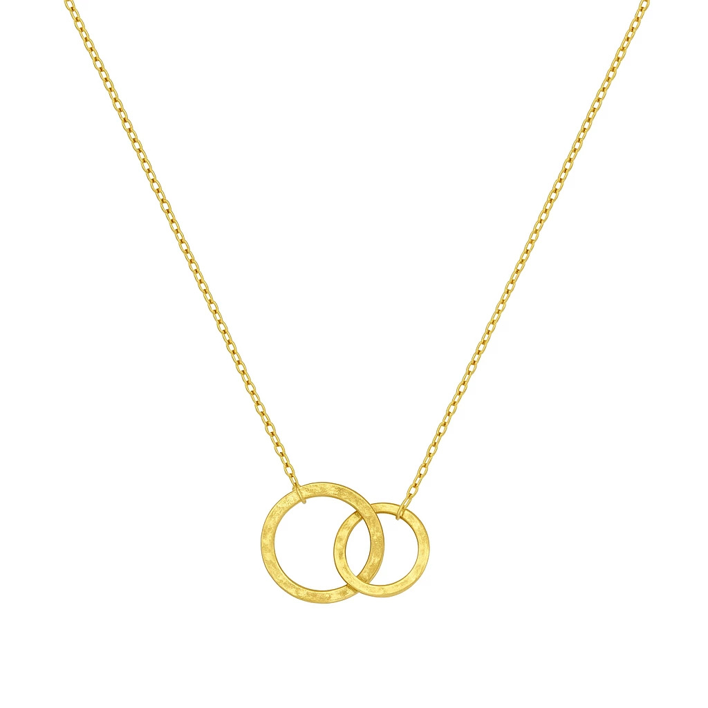 Originální zlacený náhrdelník z chirurgické oceli s motivem dvou kruhů. Elegantní šperk, který se bude hezky vyjímat ve Vašem dekoltu.
