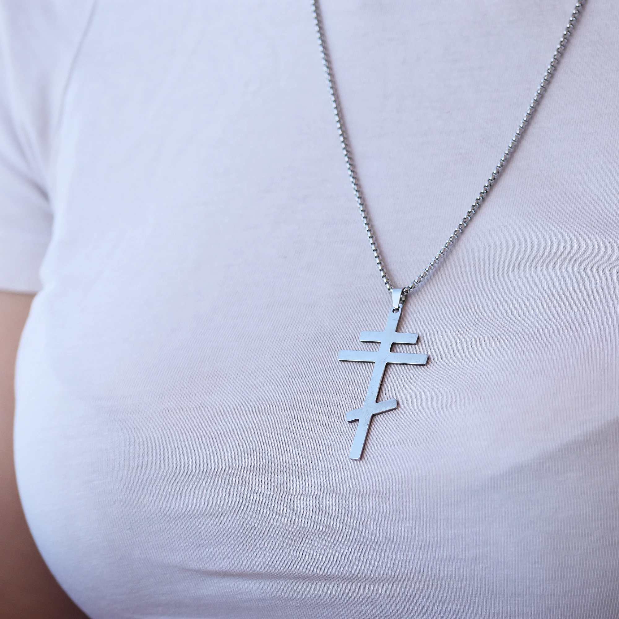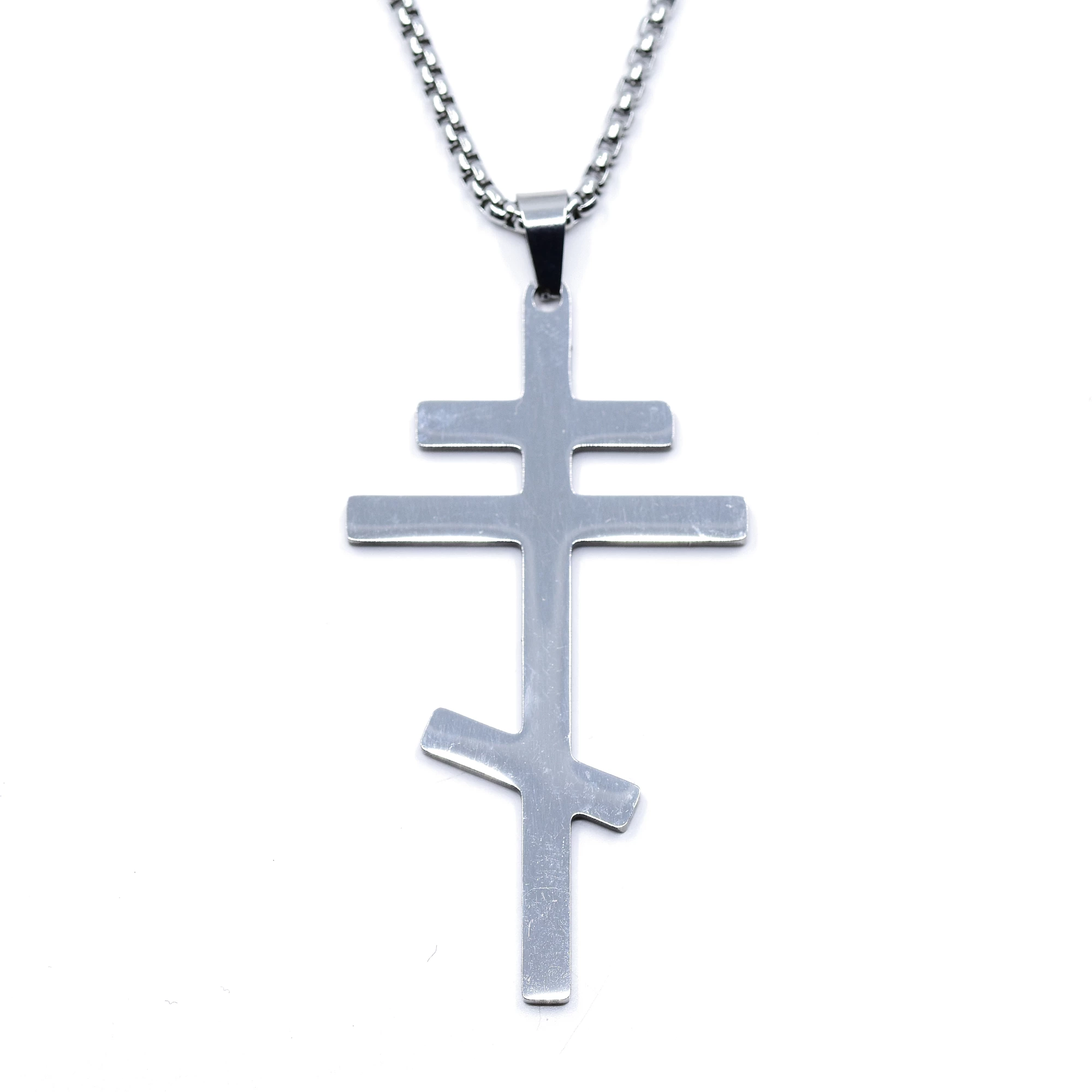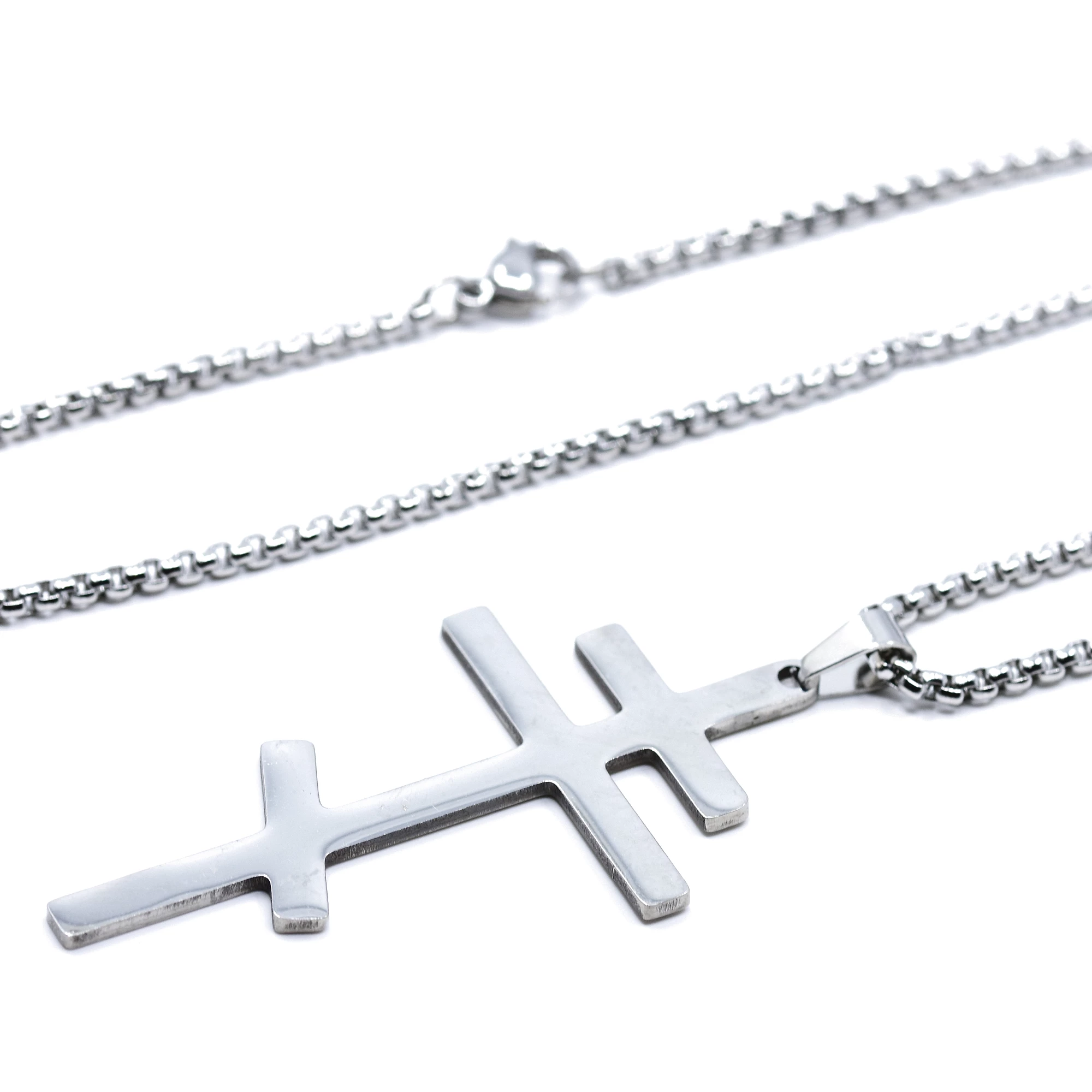Zajímavý přívěsek z chirurgické oceli zdobený hladkým netradičním křížem. Šperky s motivem kříže jsou velmi oblíbené, mrkněte na našem e-shopu na kompletní nabídku a pořiďte si k přívěsku například ještě náušnice. Řetízek v délce 60 cm je k přívěsku zdarma.