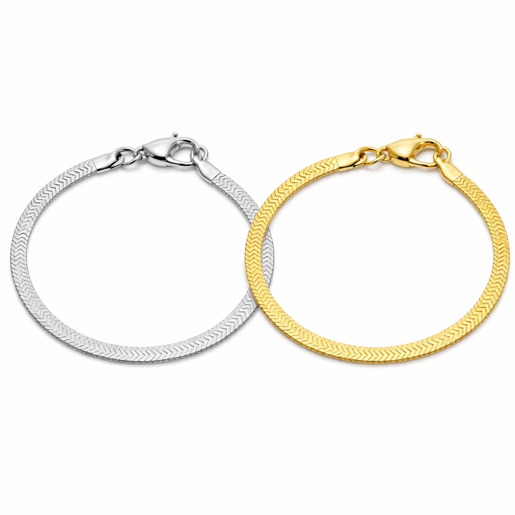 Půvabný a trendy náramek z chirurgické oceli v hladkém designu. Nabízíme ve dvou barevných variantách - stříbrné a zlacené.