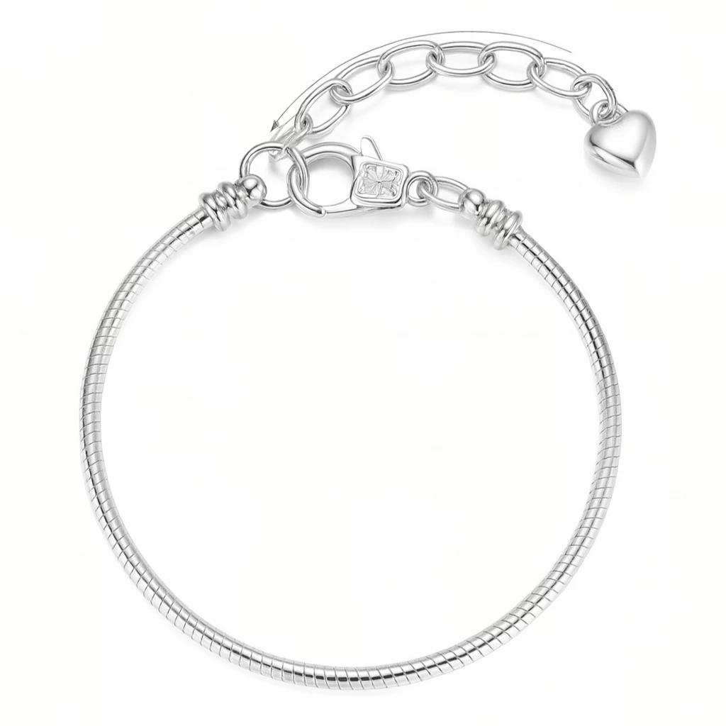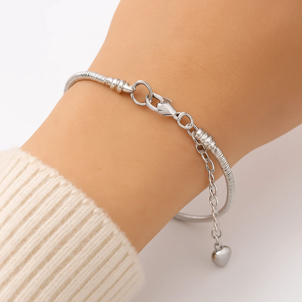 Pružný náramek z chirurgické oceli zdobený hladkým srdíčkem a dvěma tunelovými komponenty. Vhodný pro každou příležitost. Chirurgická ocel je oblíbená pro svoji odolnost a dlouhodobě krásný vzhled. Velmi vhodná pro alergiky na ostatní kovy.