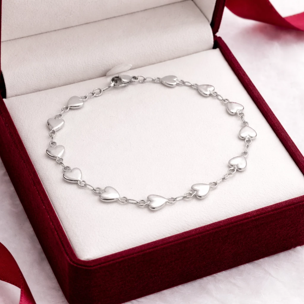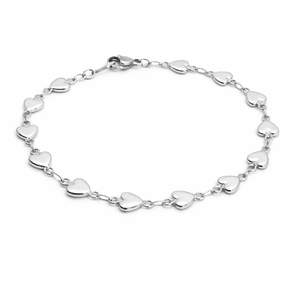 Atraktivní ocelový náramek s motivem srdíček je perfektní volbou jak doladit každý styl. Náramek pohodlně zapnete pomocí karabinky. Vybrat si můžete hned z několika délek.