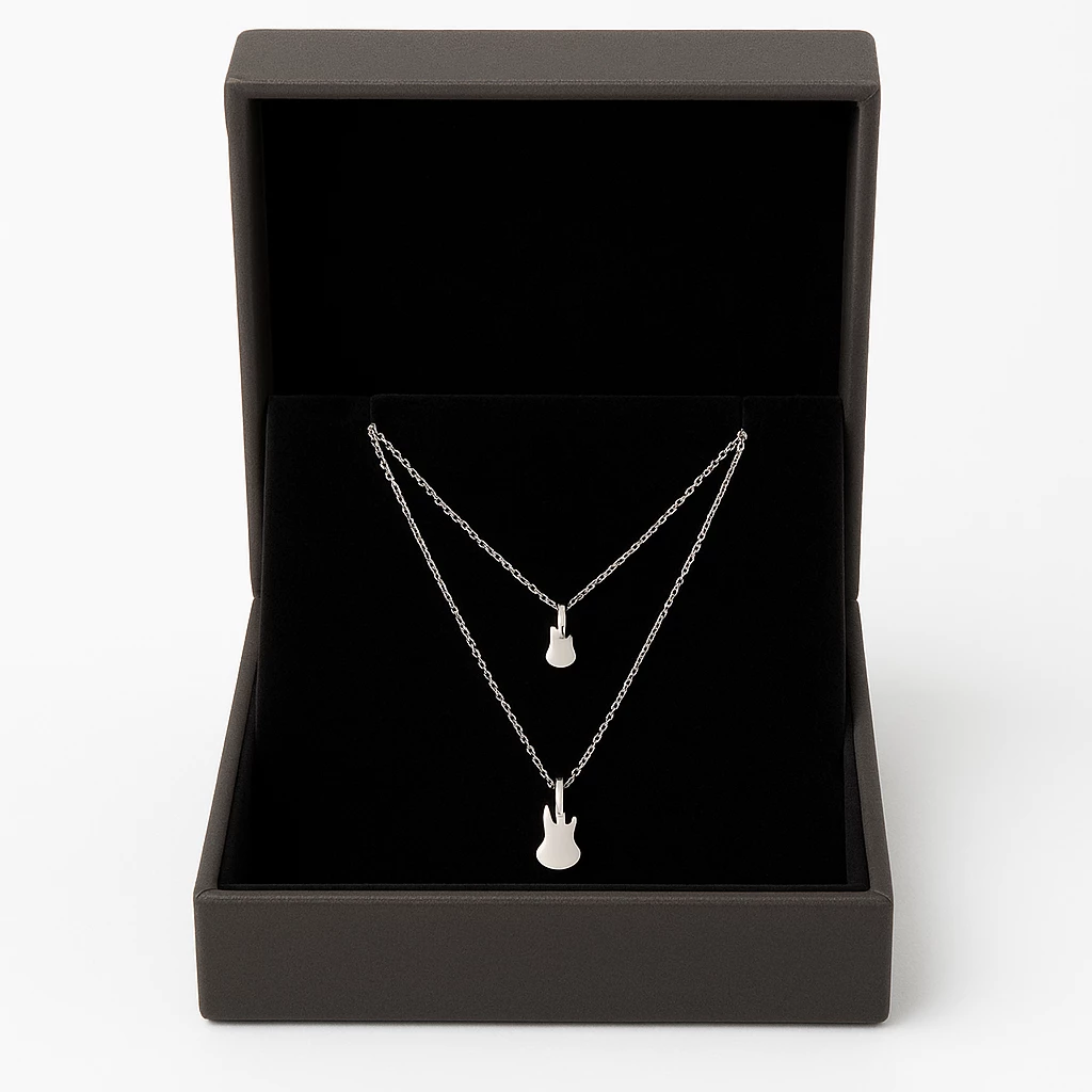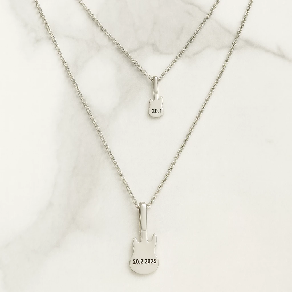 Přívěsek z chirurgické oceli s motivem kytary. Kytara je krásně propracovaná v kombinaci lesku a polomatu. Vhodná nejen pro milovníky hudby. Můžete si za zvýhodněnou cenu vybrat také řetízek v délce 45 nebo 50 cm. Tuto možnost si vyberete ve filtru.