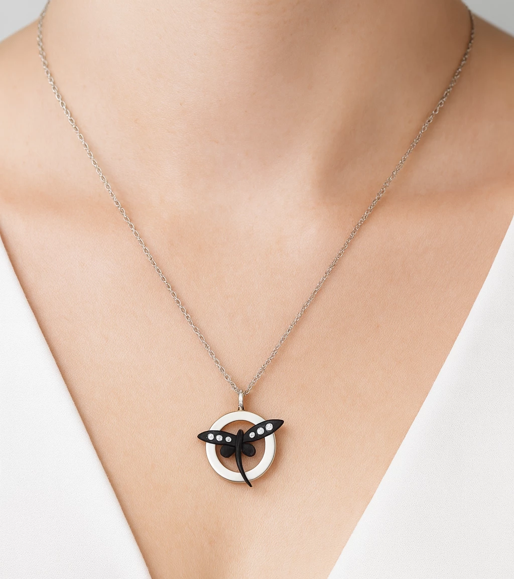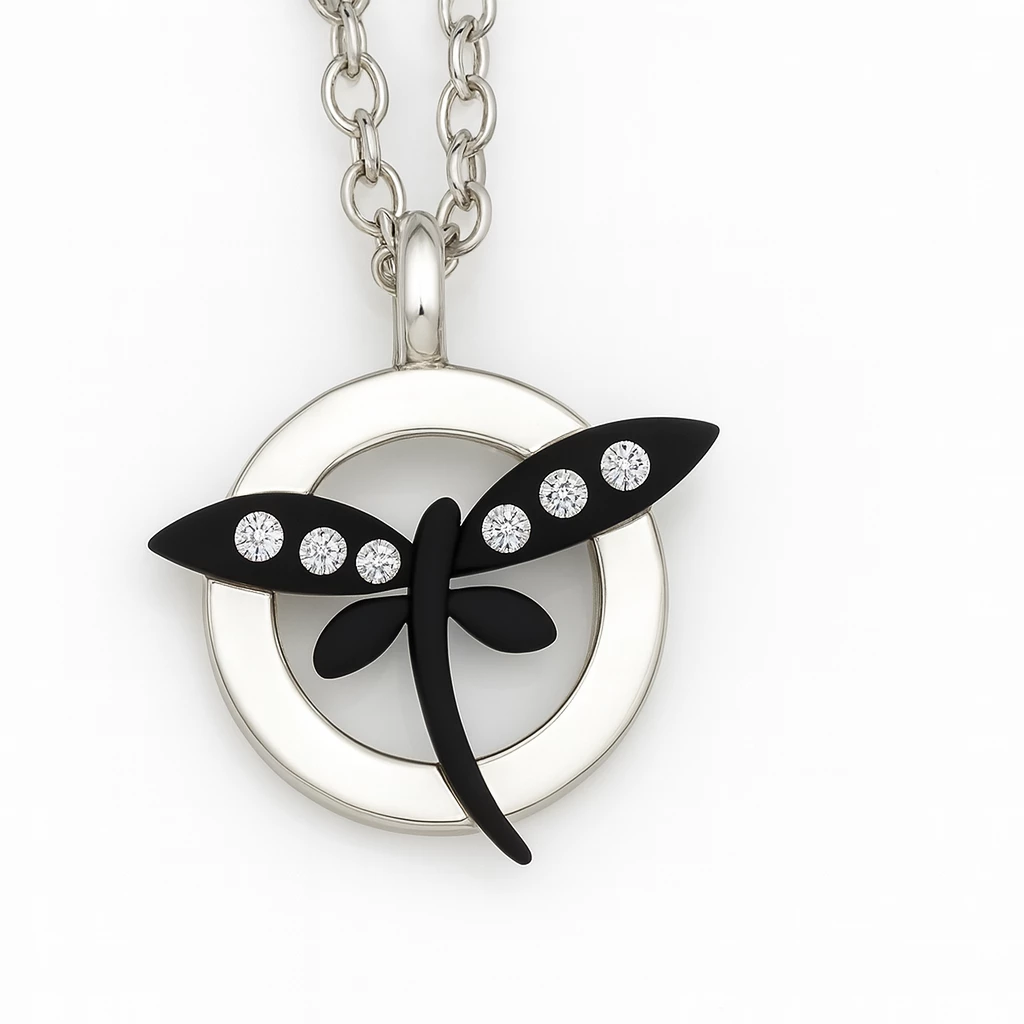 Propracovaný ocelový přívěsek s motivem vážky rozhodně patří do Vaší šperkovnice.