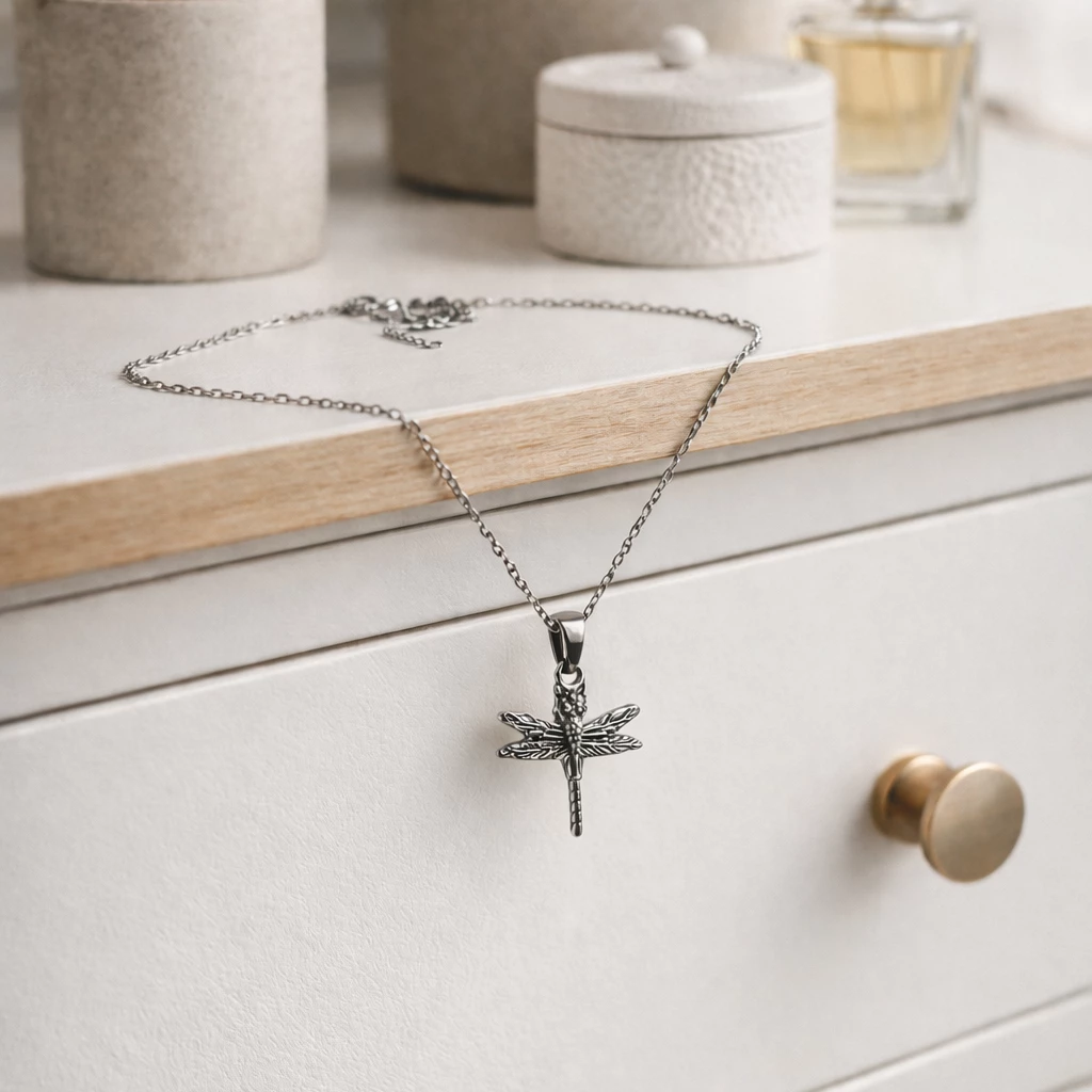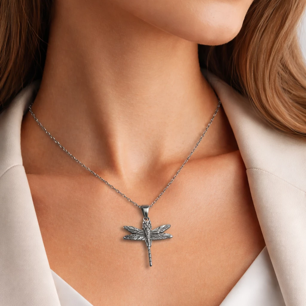 Ocelový přívěsek vážka Ariel je jemným a elegantním doplňkem, který v sobě nese symboliku svobody, lehkosti a nové energie.