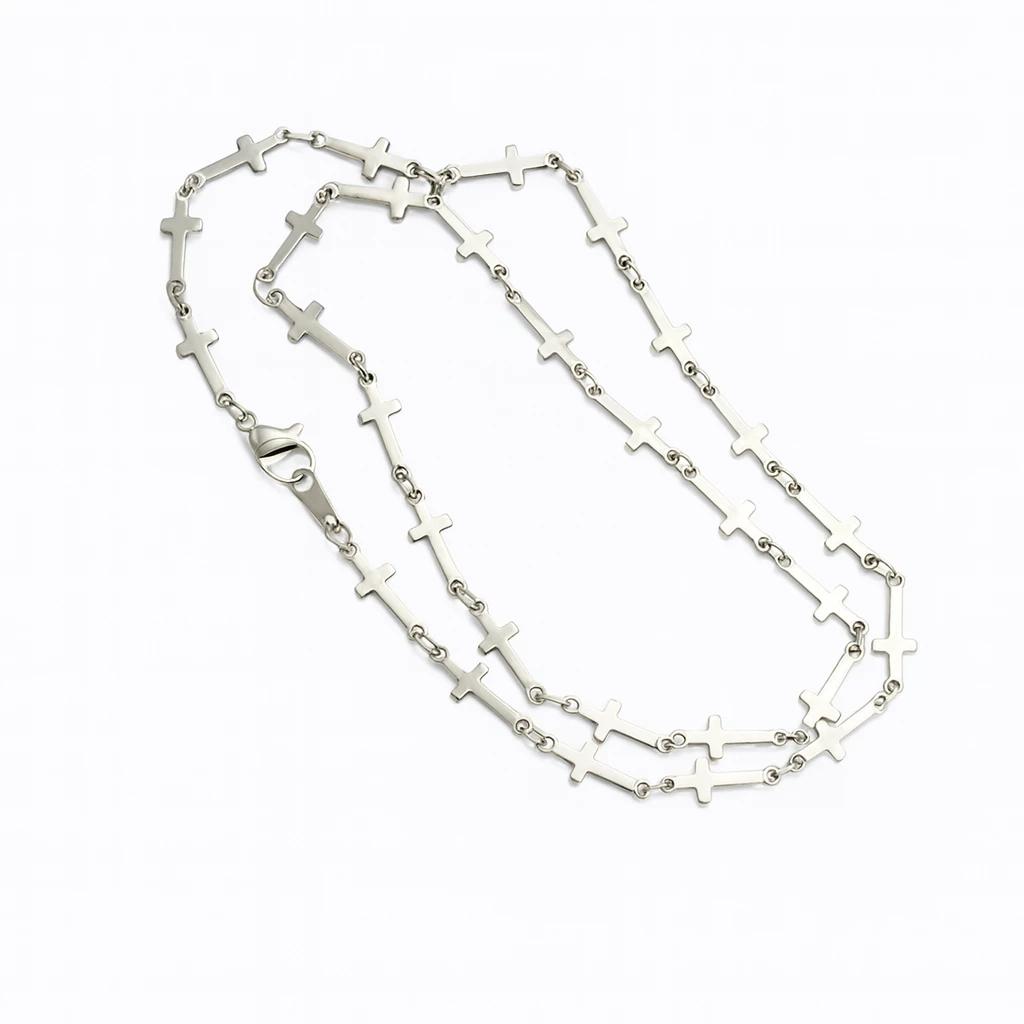 Náhrdelník z chirurgické oceli kompletně tvořený hladkými drobnými křížky. Zapínání je provedeno na karabinku. Na našem e-shopu najdete spoustu produktů s motivem kříže, které si mezi sebou vzájemně můžete kombinovat.