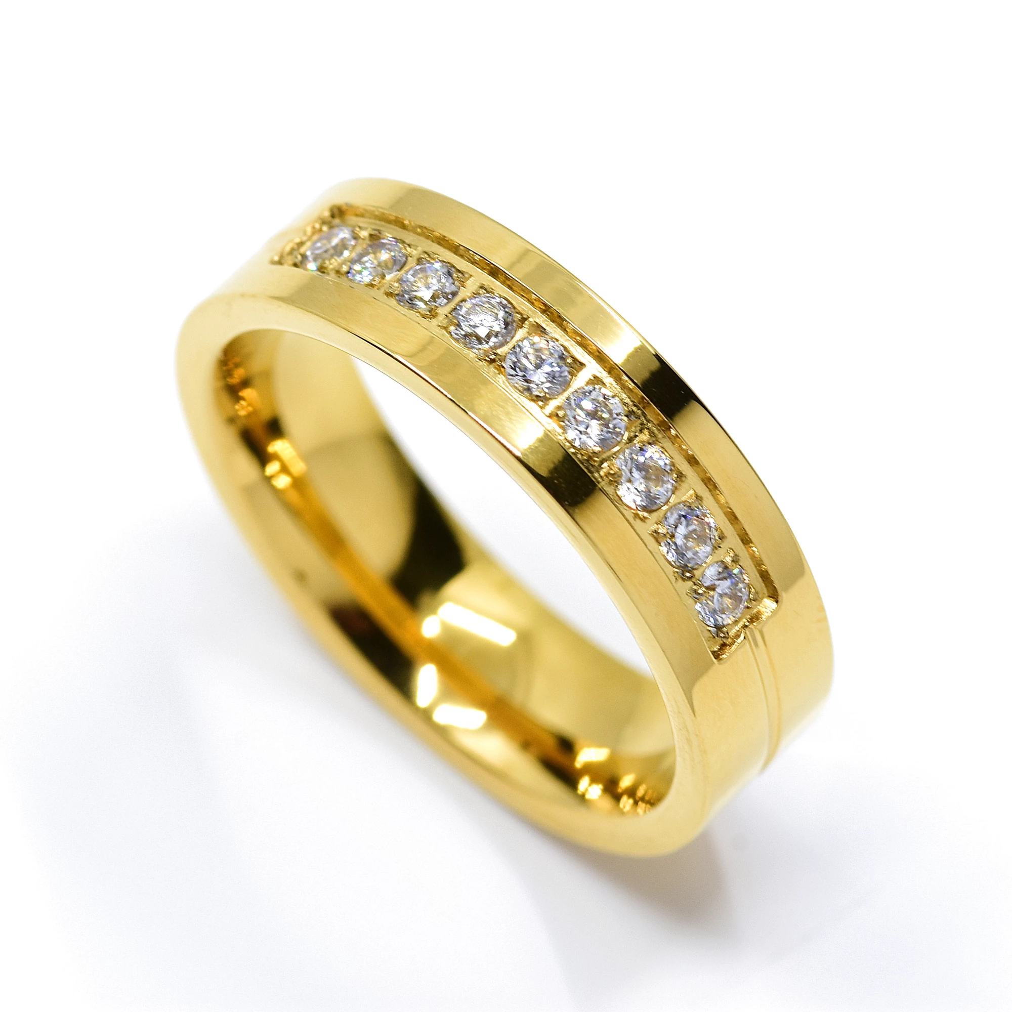 Tento skvostný ocelový prsten je zdobený několika třpytivými zirkony. Můžete si u nás vybrat buď stříbrnou, nebo zlacenou variantu prstenu. Uvedená cena je za 1 kus. Připravujete se na důležitý životní krok? Pak Vám v žádném případě nesmí chybět prstýnky, které budou navždy připomínat Váš významný den. Variantu prstenu bez zirkonů najdete zde.