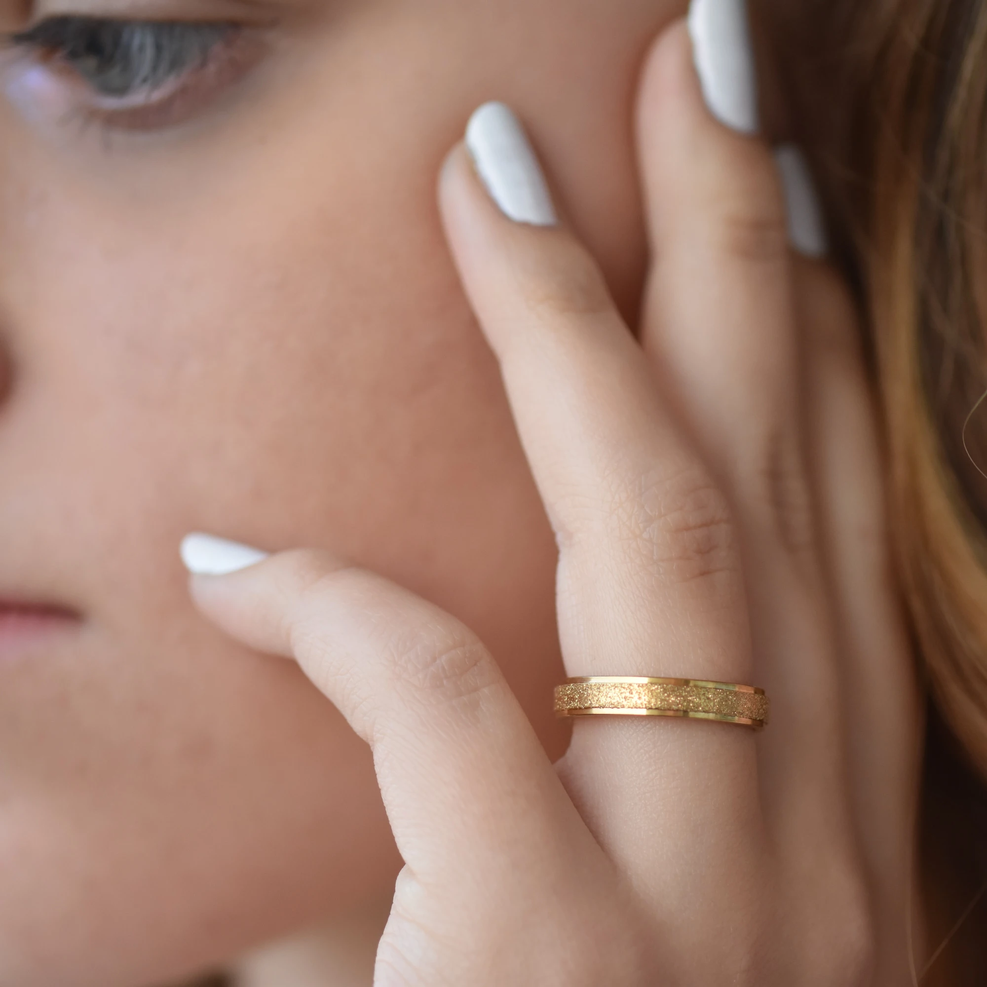 Půvabný ocelový prsten ve zlacené barvě. Uvedená cena je za 1 kus.