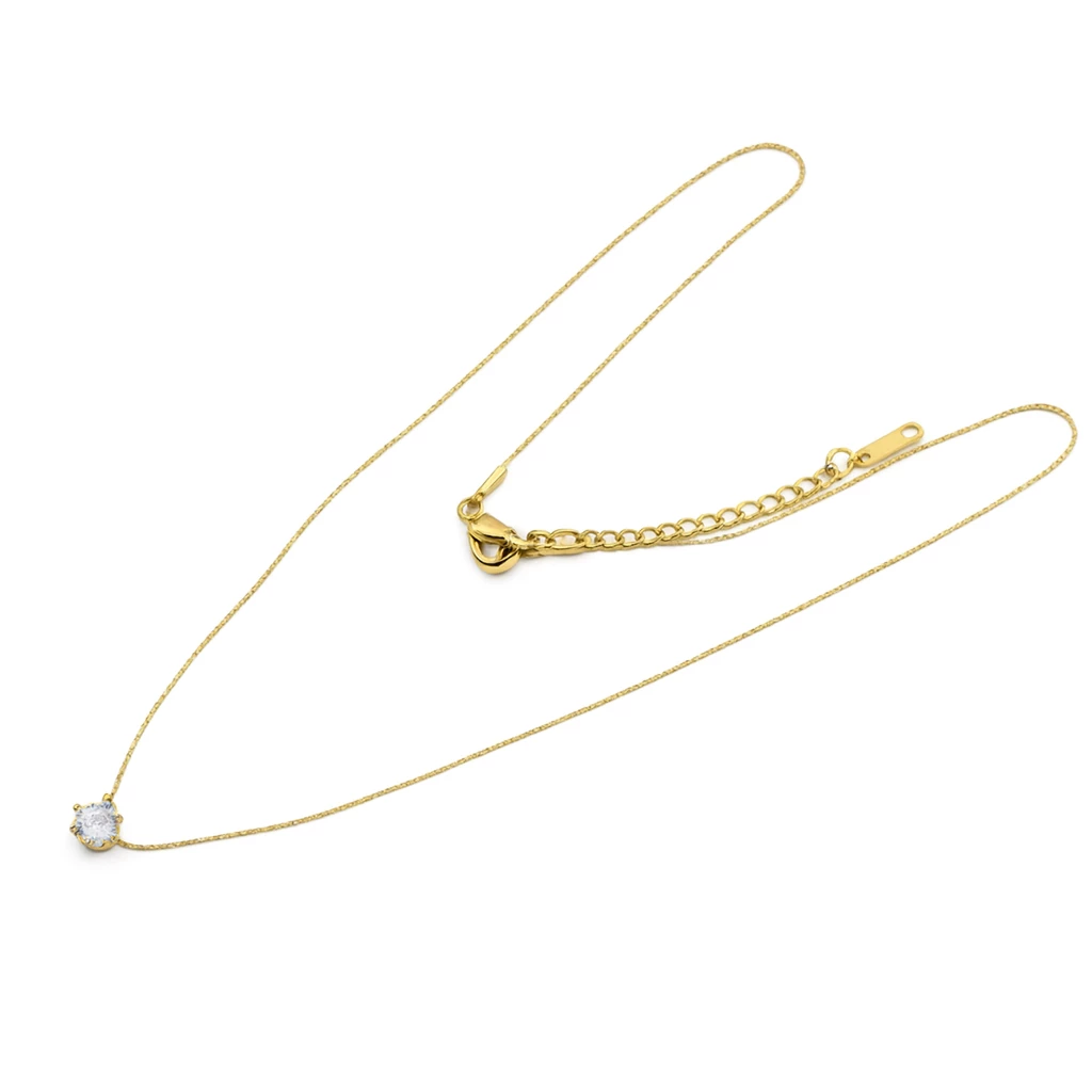 Dámský zlacený ocelový náhrdelník s čirým zirkonkem uprostřed. Decentní, ale velmi půvabný šperk.