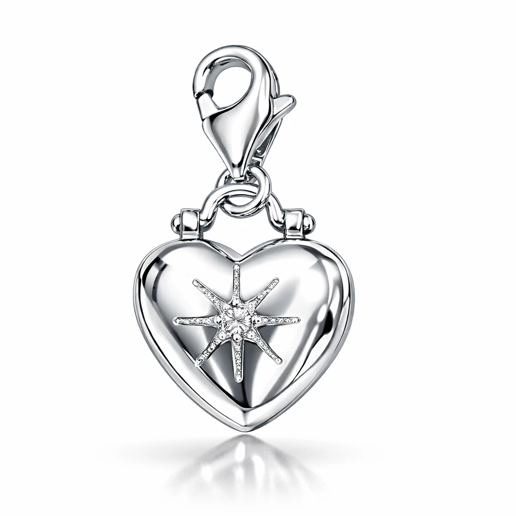 Stříbrný otevírací medailonek Iris ve tvaru srdce z Stříbra Ag 925/1000 s rhodiováním je doplněný třpytivým zirkonem a stane se krásným symbolem blízkosti a vzpomínek.