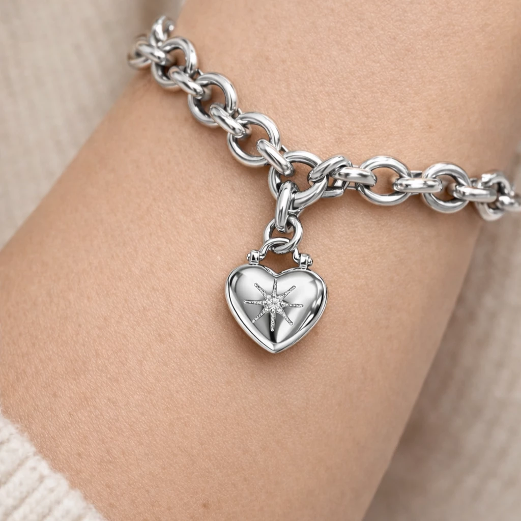 Stříbrný otevírací medailonek ve tvaru srdce Iris je výjimečný šperk s emocí, který vám umožní nosit své nejcennější vzpomínky stále u sebe.