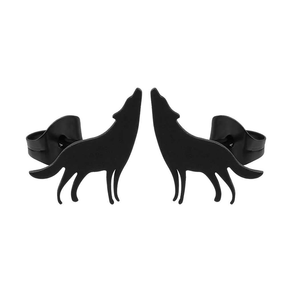 Černé ocelové náušnice s motivem vlka. Ideální produkt jak pro ženy, tak muže i děti. Černou klasikou chybu rozhodně neuděláte. Ilustrační foto.