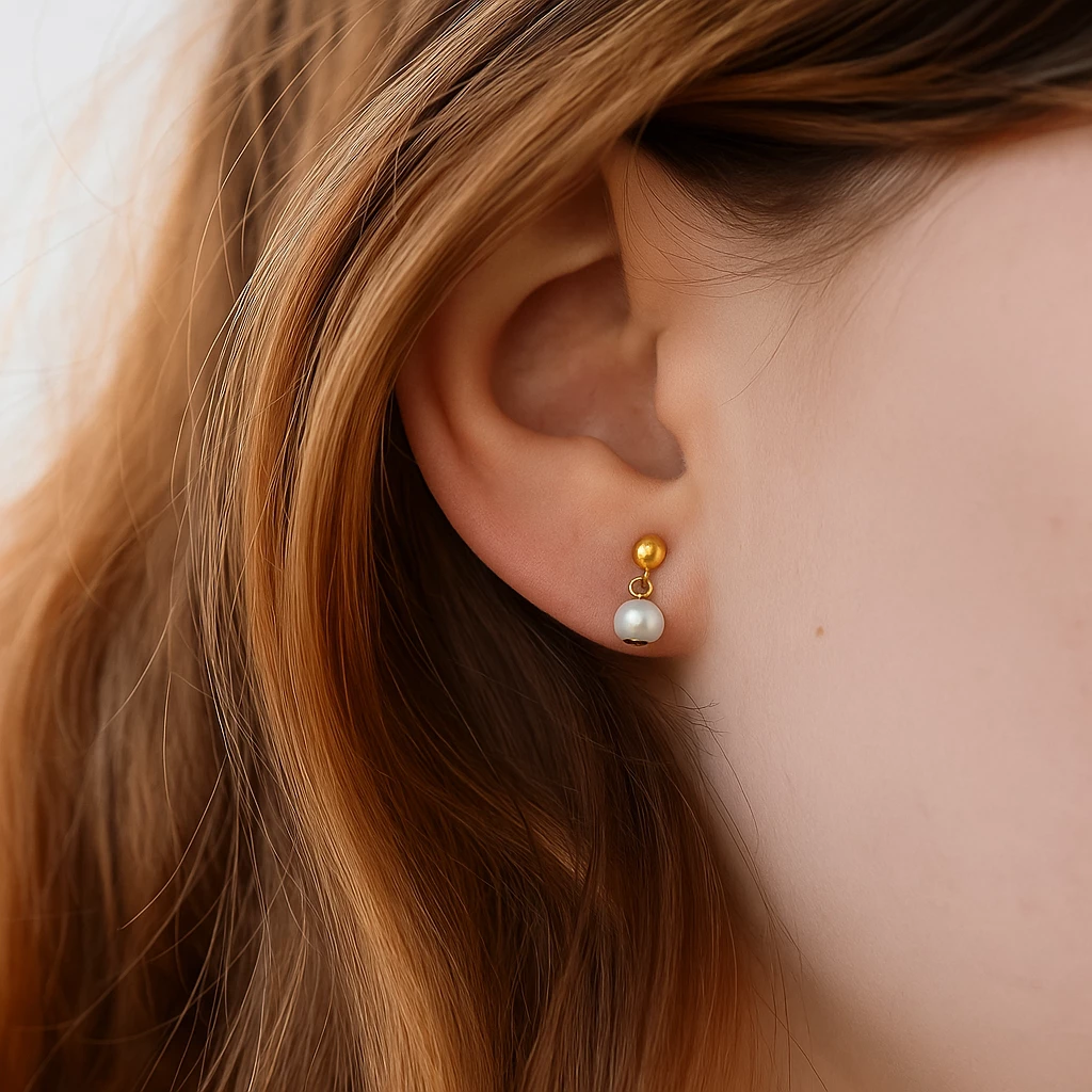 Krásné dámské minimalistické zlacené náušnice s perličkou. Zapínání u náušnic je na puzetu.