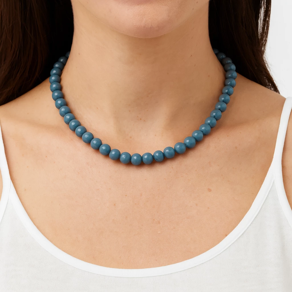 Půvabné dámské modro - šedé korále dokonale dozdobí Váš dekolt.