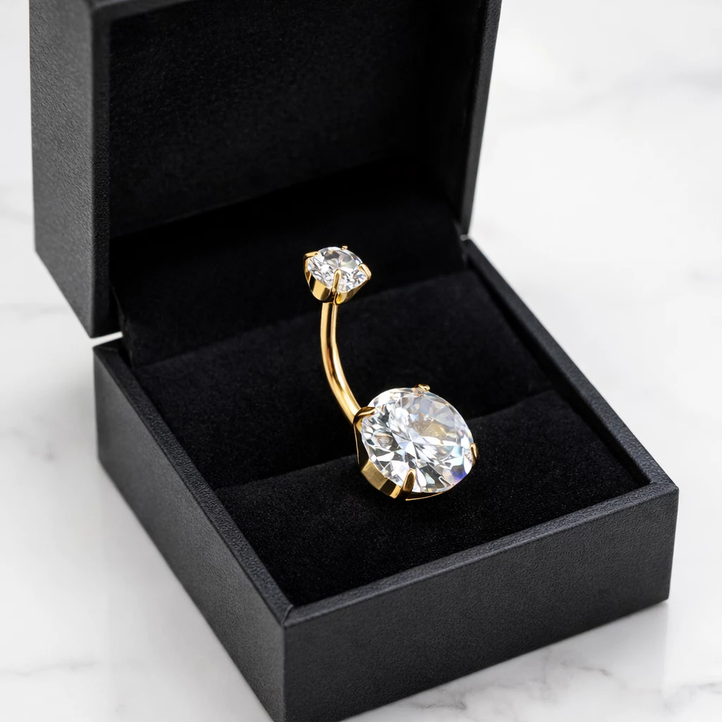 Tento piercing do pupíku je elegantním a nadčasovým doplňkem, který podtrhne ženskost a styl.