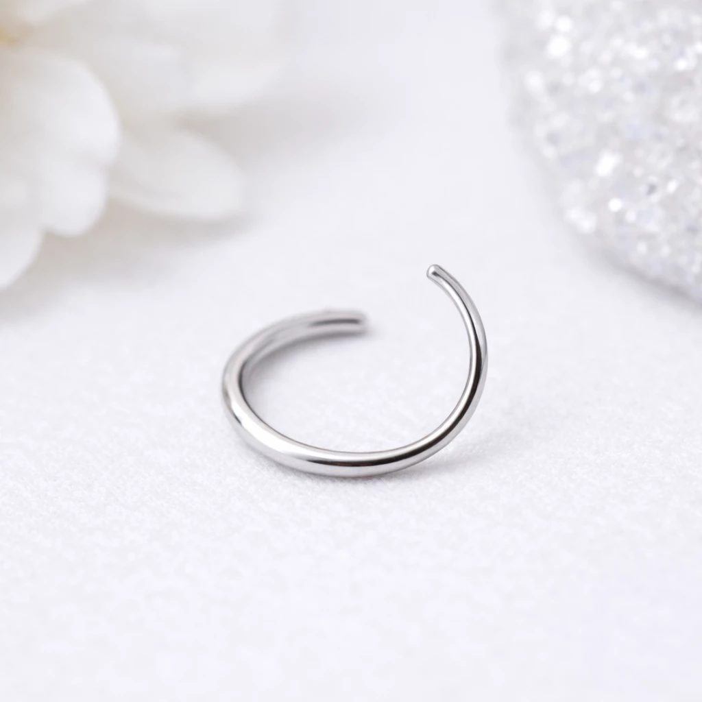 Ocelový kroužek do nosu v jednoduchém a minimalistickém designu. Nadčasový piercing z chirurgické oceli vhodný pro každodenní nošení.
