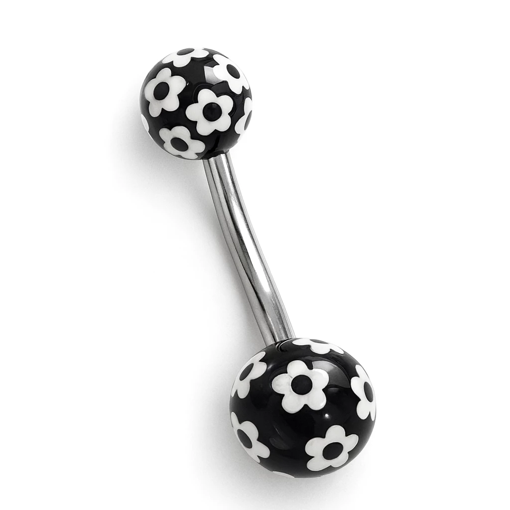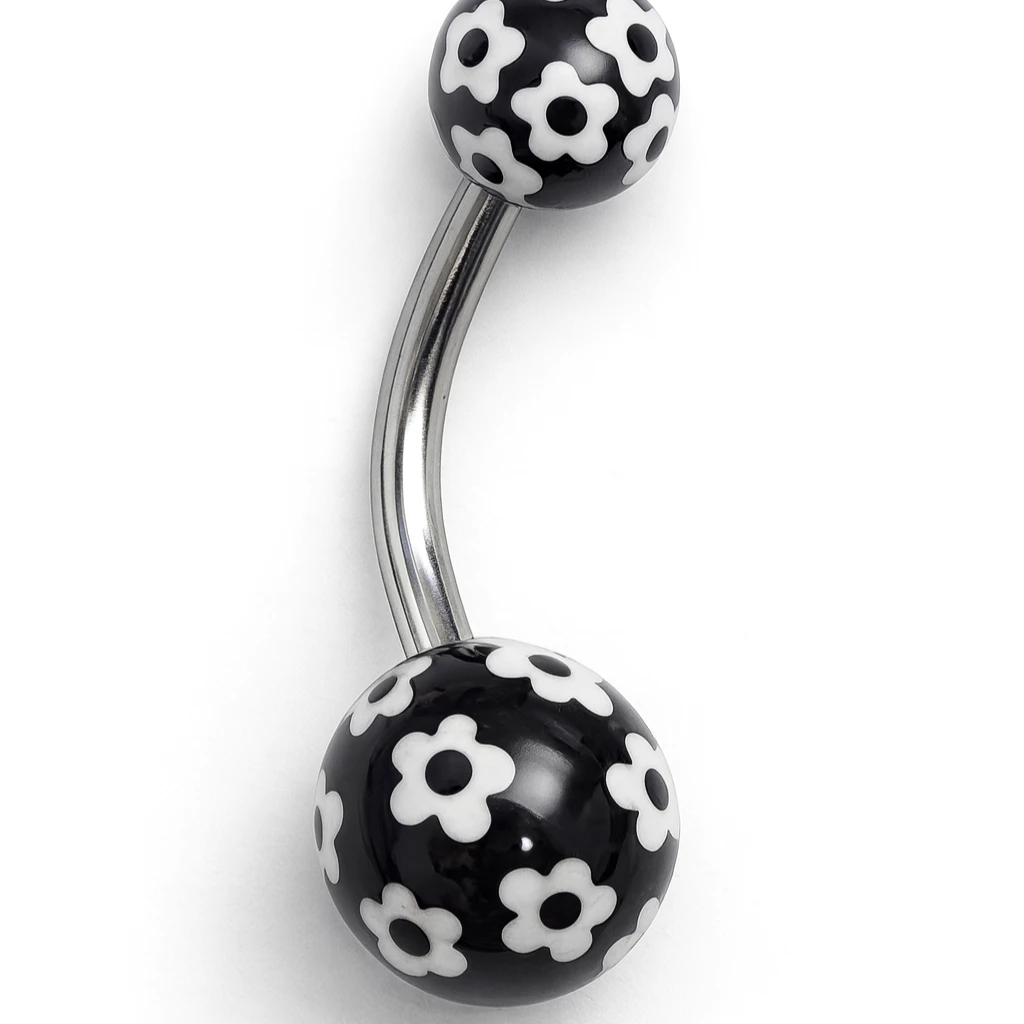 Ocelový piercing do pupíku.