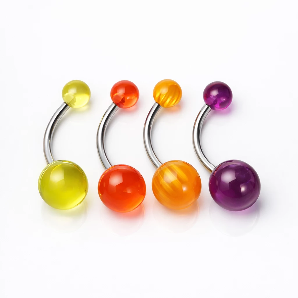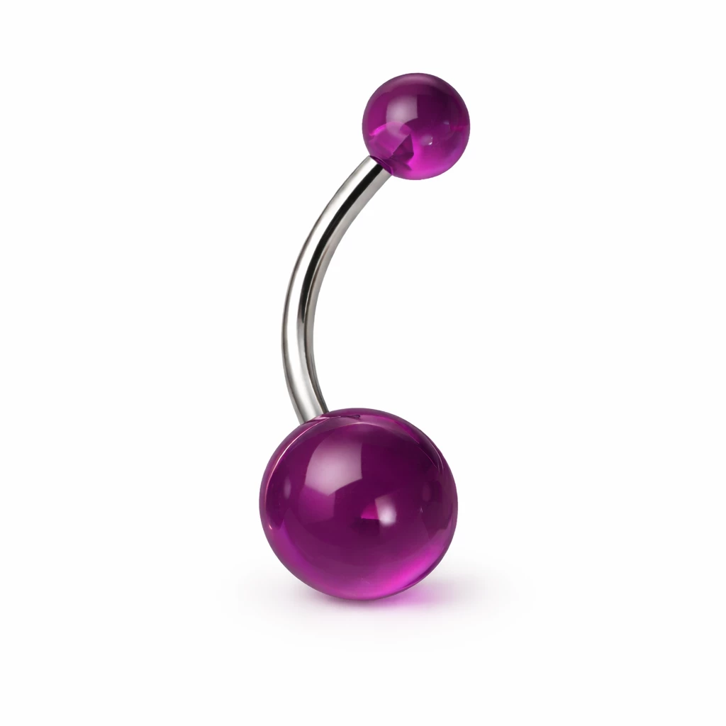 Ocelový piercing do pupíku kuličky zaujme jednoduchým designem a výraznými barevnými kuličkami. Pohodlný doplněk, který dodá šperku svěží a hravý vzhled.