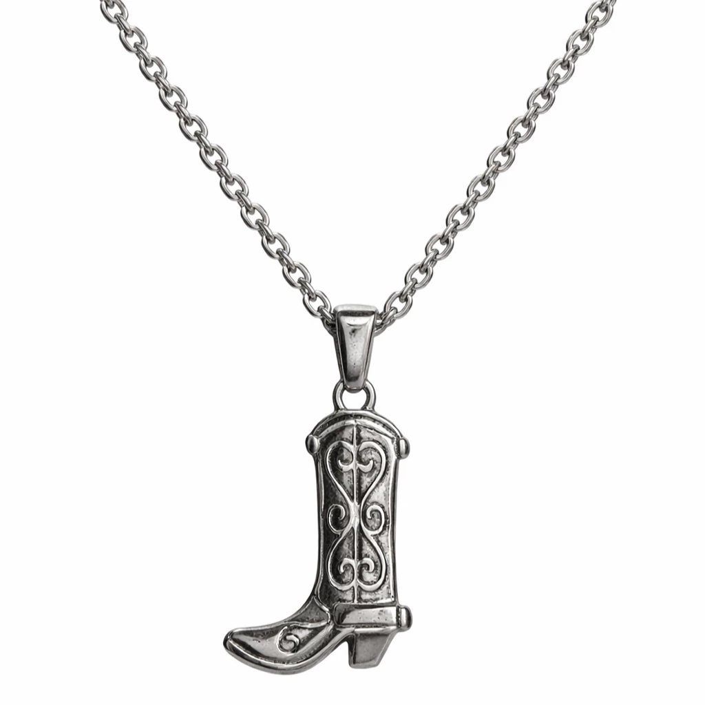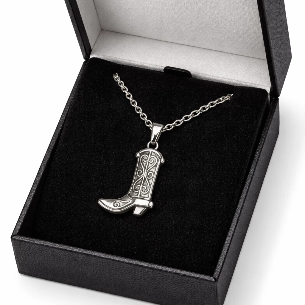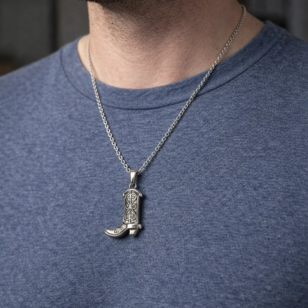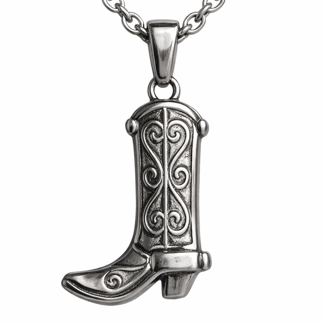 Ocelový přívěsek kovbojská bota Dakota je vyroben z kvalitní chirurgické oceli a vyniká detailním zpracováním, které podtrhuje jeho jedinečný westernový charakter.