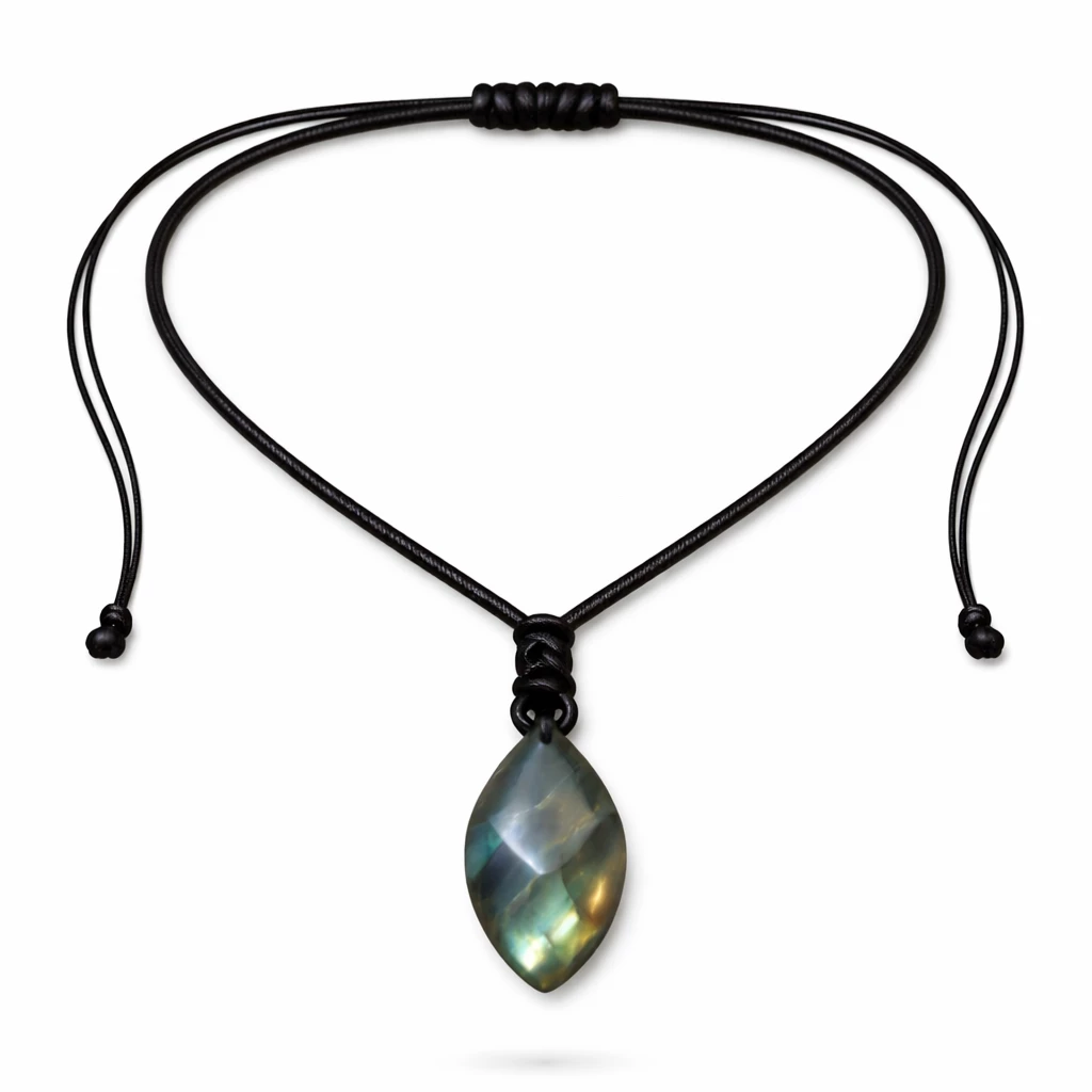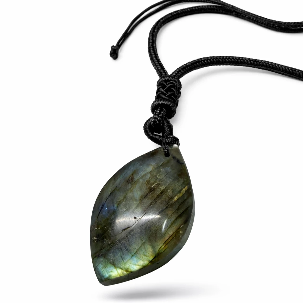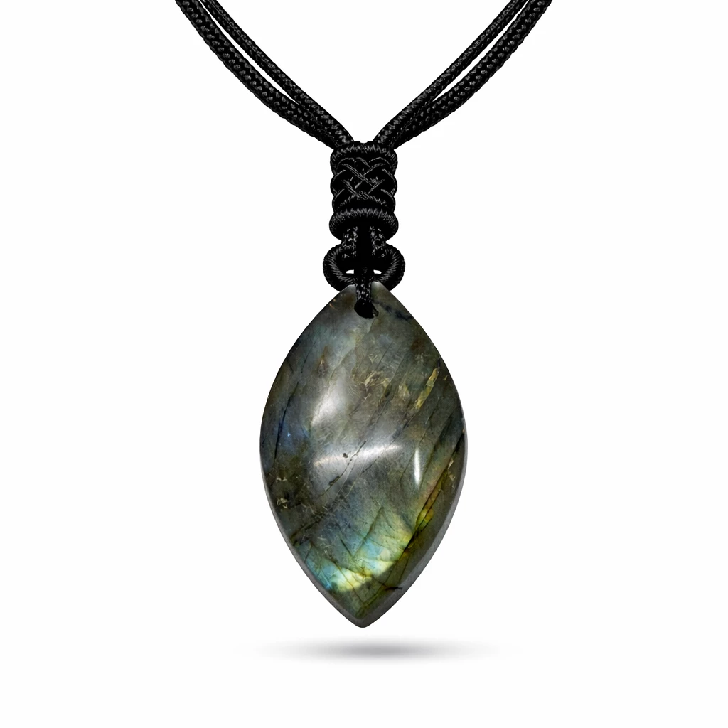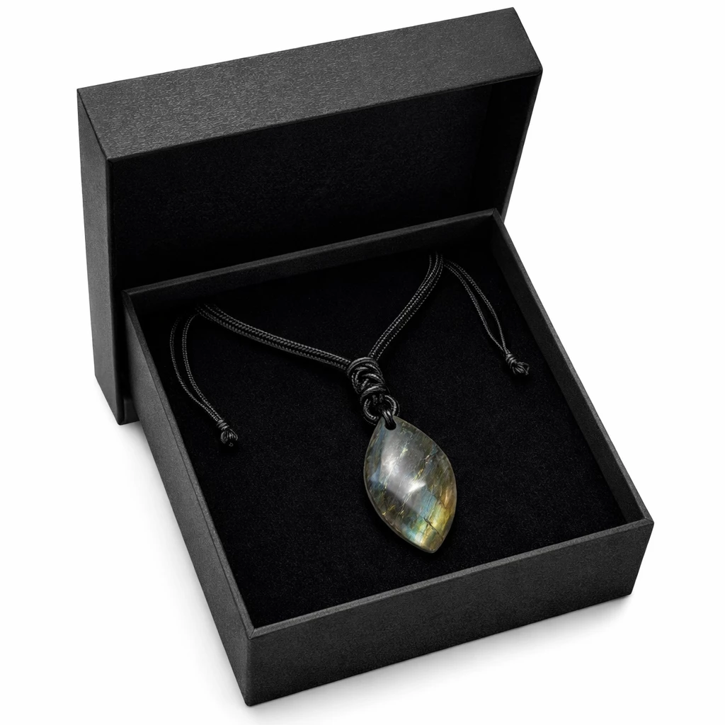 Náhrdelník s labradoritem Mystique je výrazný přírodní šperk, který v sobě spojuje minimalismus a mystickou energii minerálu. Labradorit je známý svou jedinečnou kresbou a duhovými odlesky, které se mění podle dopadu světla.