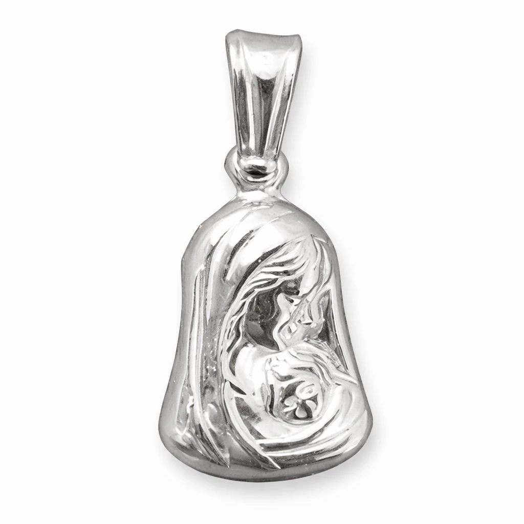 Stříbrný přívěsek Madona mateřství je vyroben ze Stříbra Ag 925/1000 a opatřen rhodiovanou povrchovou úpravou, která zajišťuje vysoký lesk, ochranu proti zčernání a dlouhou životnost šperku. Jemně plastický motiv Madony s dítětem v náruči působí velmi citlivě a harmonicky.