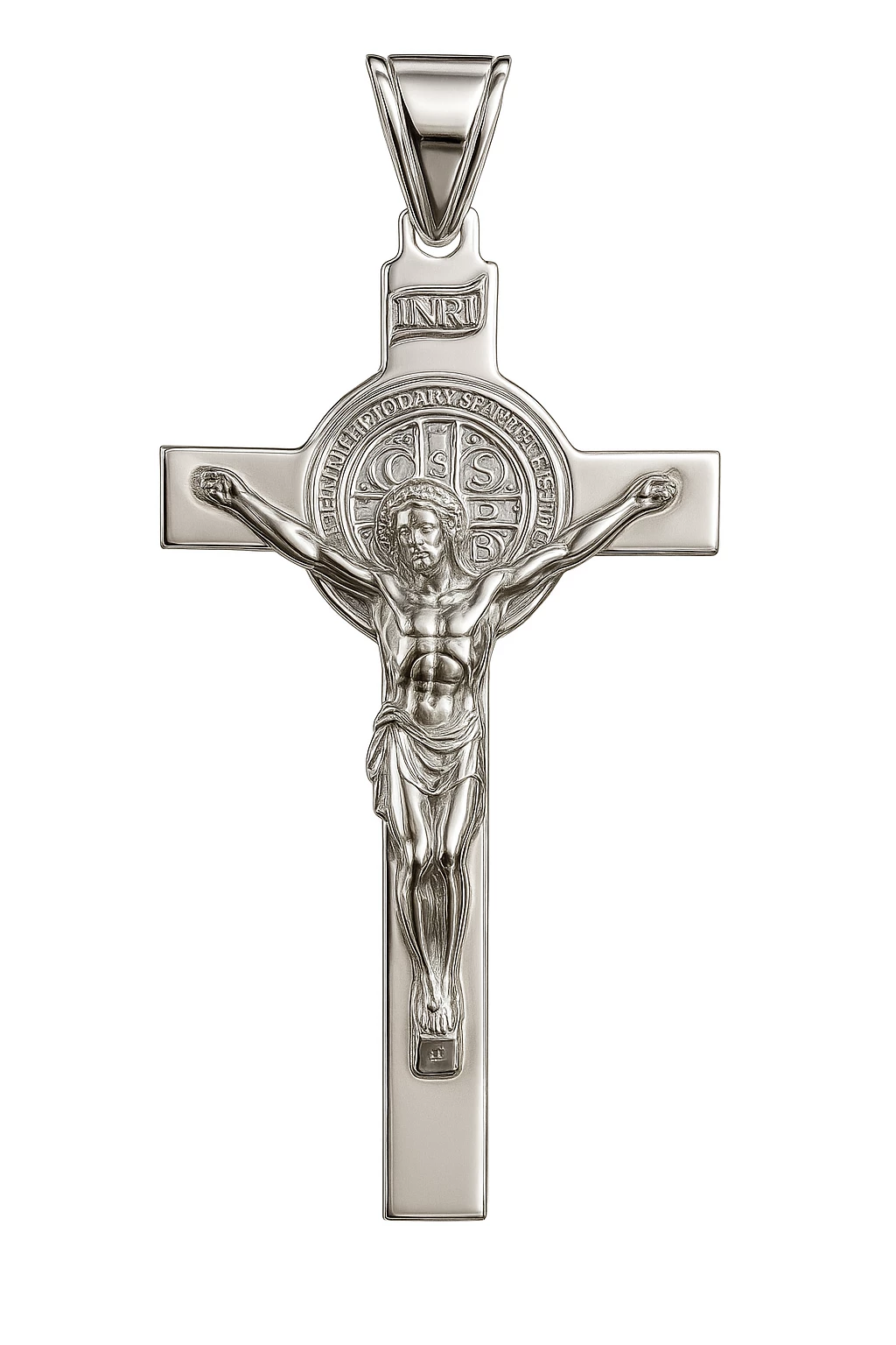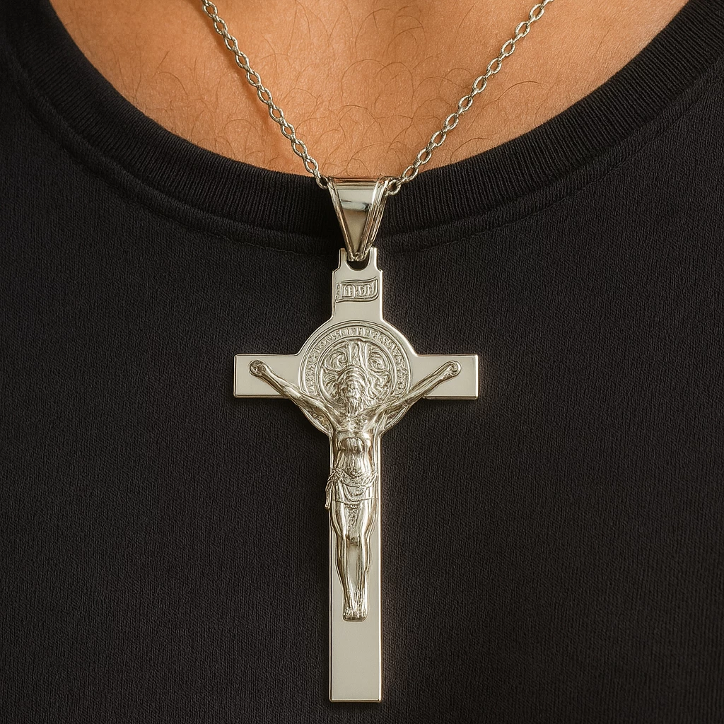 Masivní stříbrný přívěsek ve tvaru kříže s Ježíšem. Tento kříž Vás bude provázet celý život.
