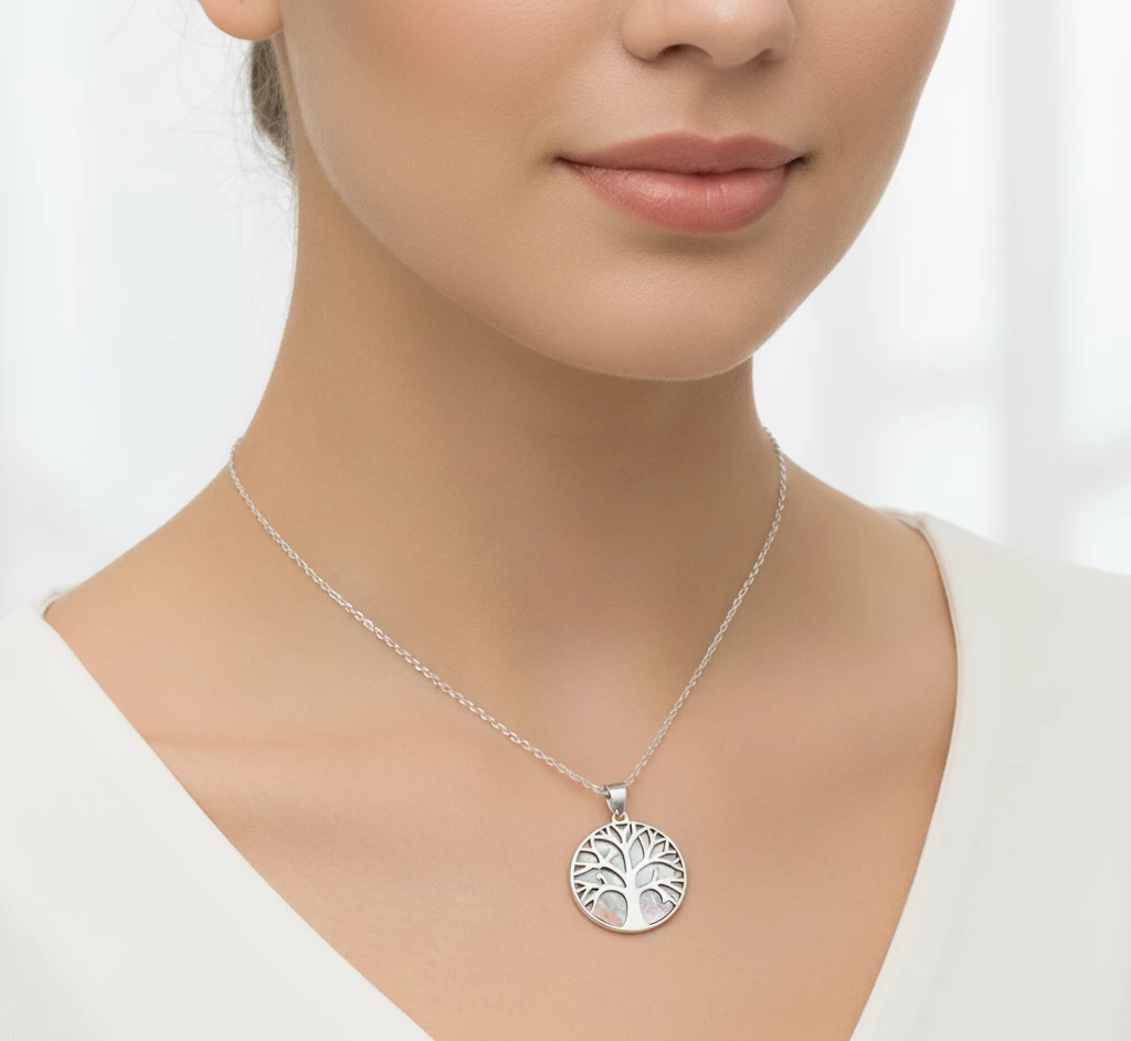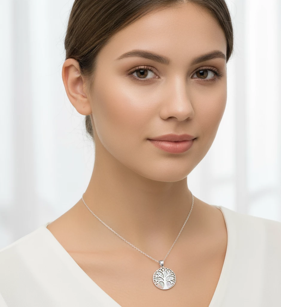 Elegantní a moderní stříbrný přívěsek strom života. Ozdobte se přívěskem s kouzelnou perletí o průměru 33mm.
