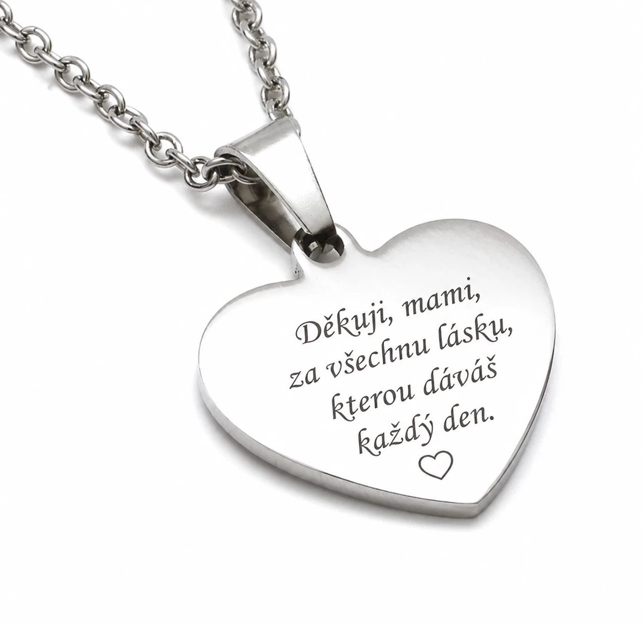 Ocelový přívěsek srdce Memo je vyroben z odolné chirurgické oceli, která vyniká svou pevností, dlouhou životností a stálým vzhledem. Díky svému jednoduchému a čistému designu nabízí ideální prostor pro gravírování vlastního textu, čímž se z něj stává osobní šperk s hlubokým významem.