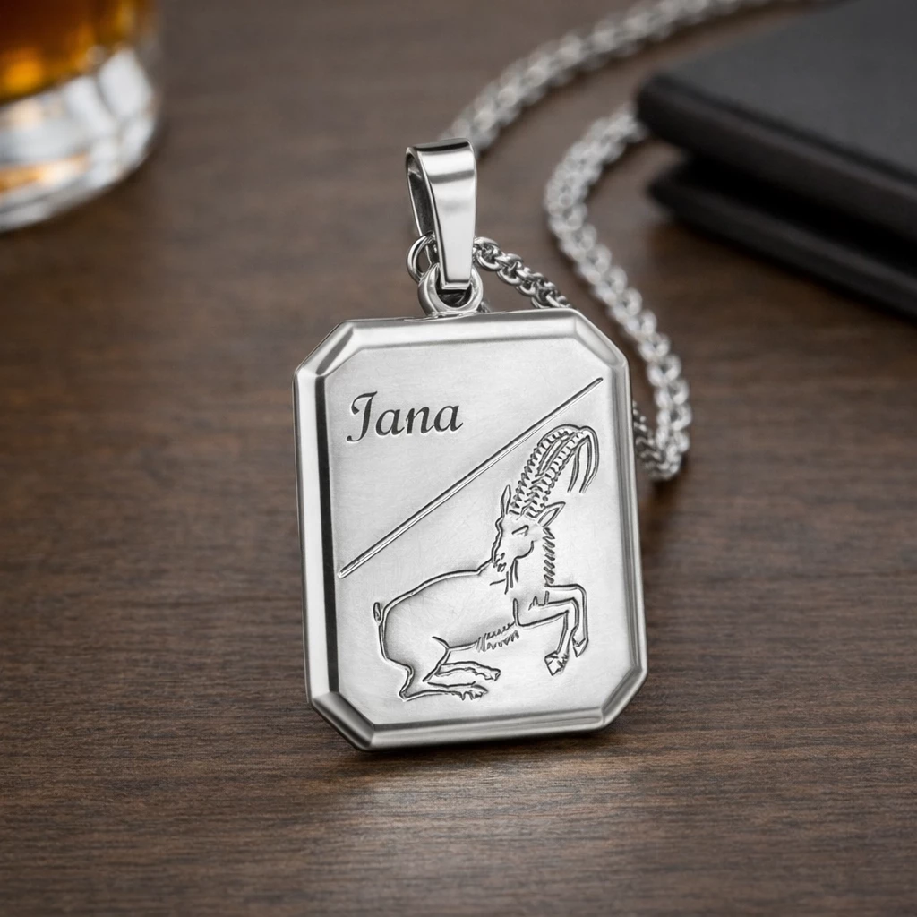 Stříbrný přívěsek kozoroh Capria ze Stříbra Ag 925/1000 je elegantním symbolem znamení zvěrokruhu s možností gravírování na zadní stranu pro osobní vzkaz.