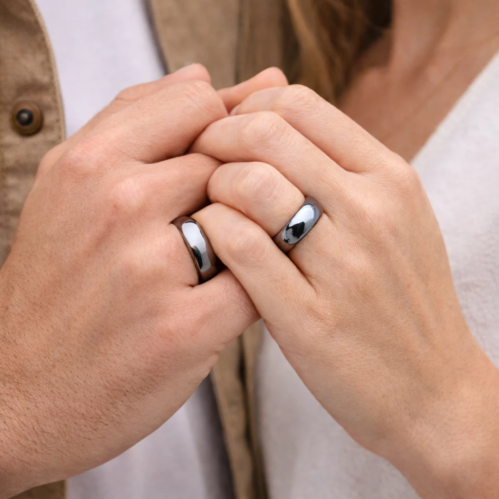 Prsten z hematitu Atlas zaujme svým minimalistickým designem a charakteristickým kovově šedým leskem minerálu hematit. Hladký povrch dodává prstenu elegantní a nadčasový vzhled.