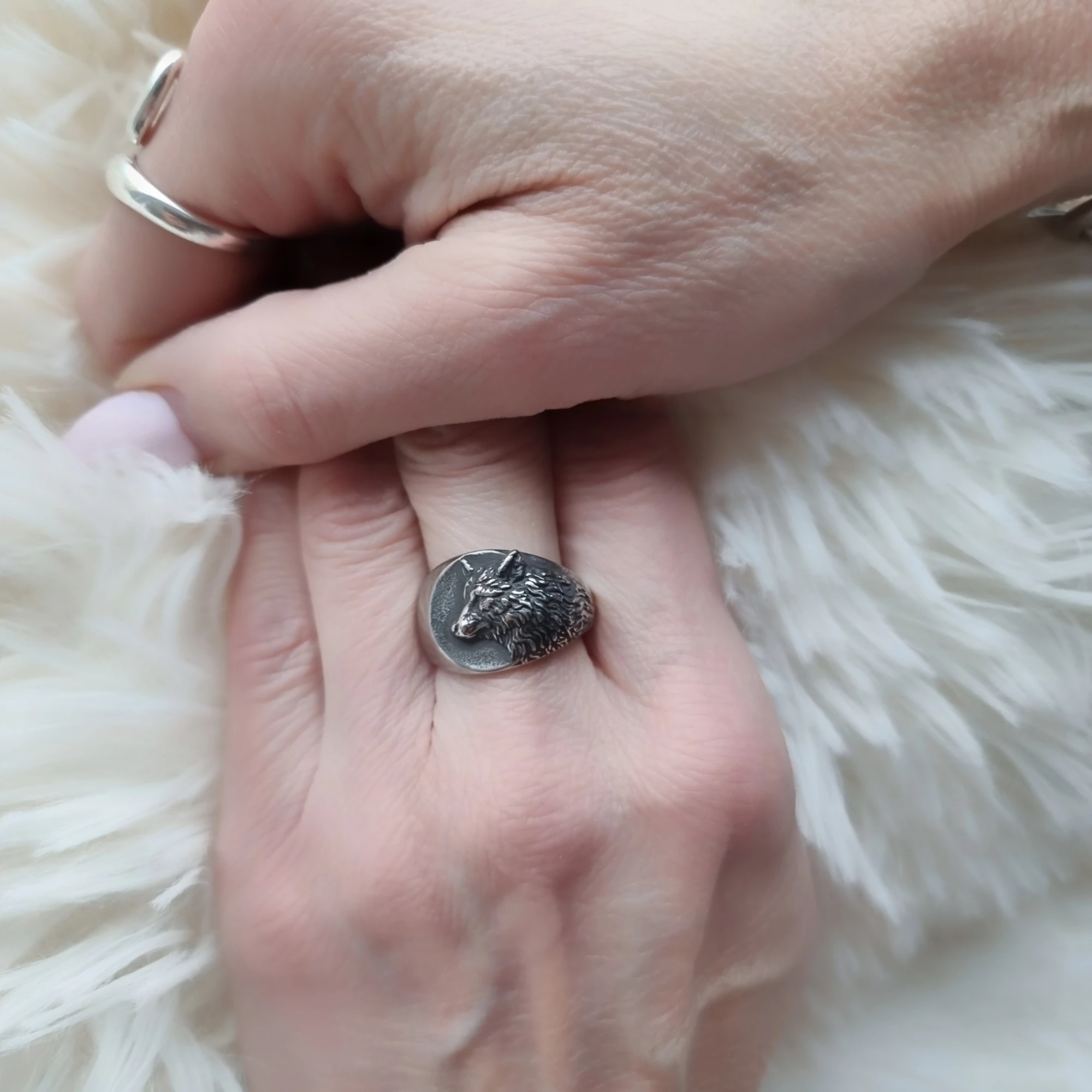 Ocelový prsten s vlkem Wolfie zaujme detailním, mírně vystouplým motivem vlka s černěnou povrchovou úpravou, která zvýrazňuje strukturu a hloubku reliéfu. Výrazný šperk s osobitým stylem.